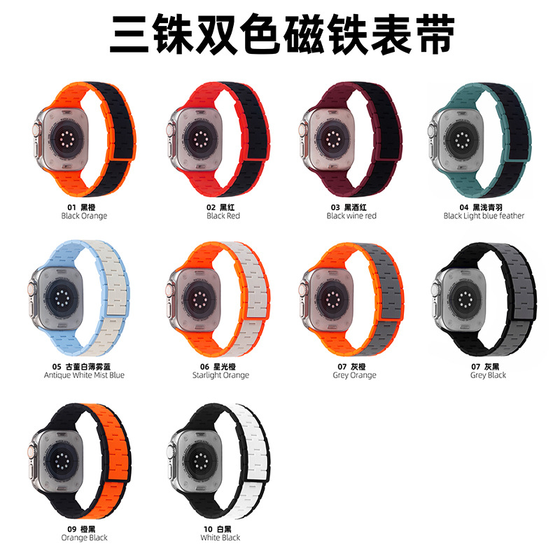 | nameOriginal | Suitable for Apple AppleWatch three two-color magnetic strap iwatch full range of universal smart watch strap |