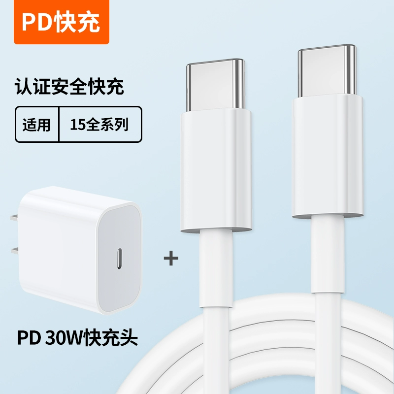 Suitable for Apple fast charging cable iPhone14/13/ProMax/12/15 original genuine data cable PD30W charger head 2 meters flat charging cable head data cable disassembly type c