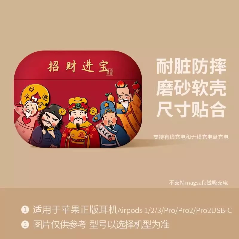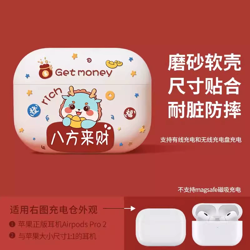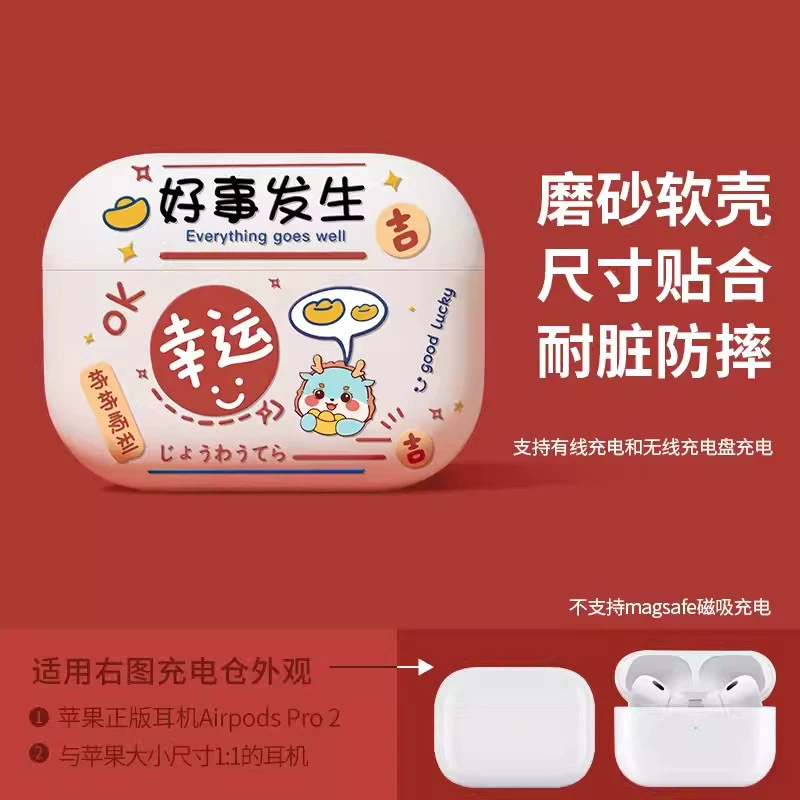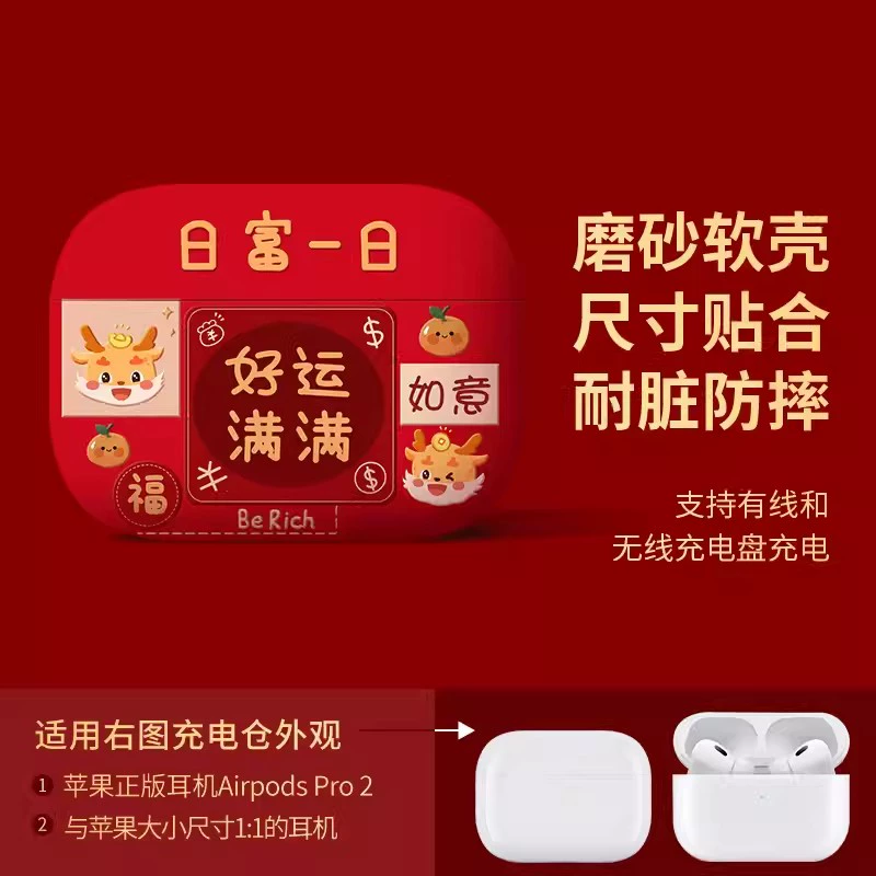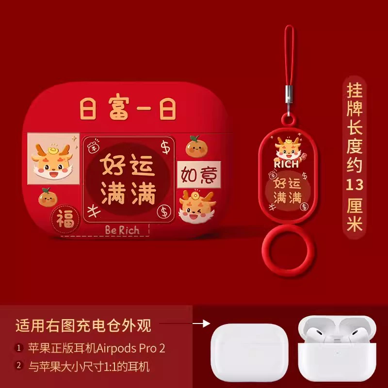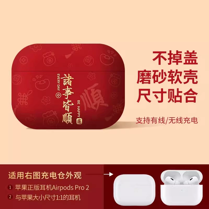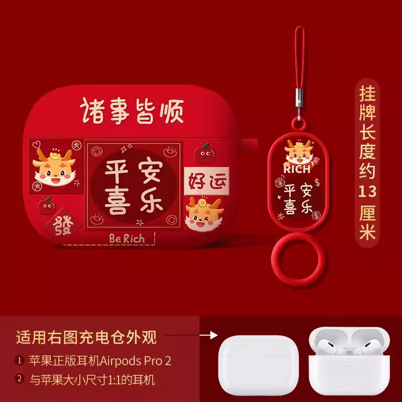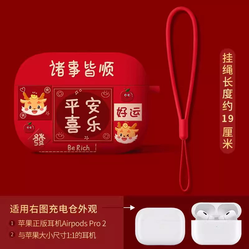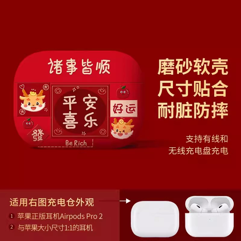 Suitable for Apple headphone protective cover airpodspro2 shell red Bluetooth 2023 new year airpods3 third generation second silicone high-end niche c-mount autumn and winter airpod soft shell year of the dragon