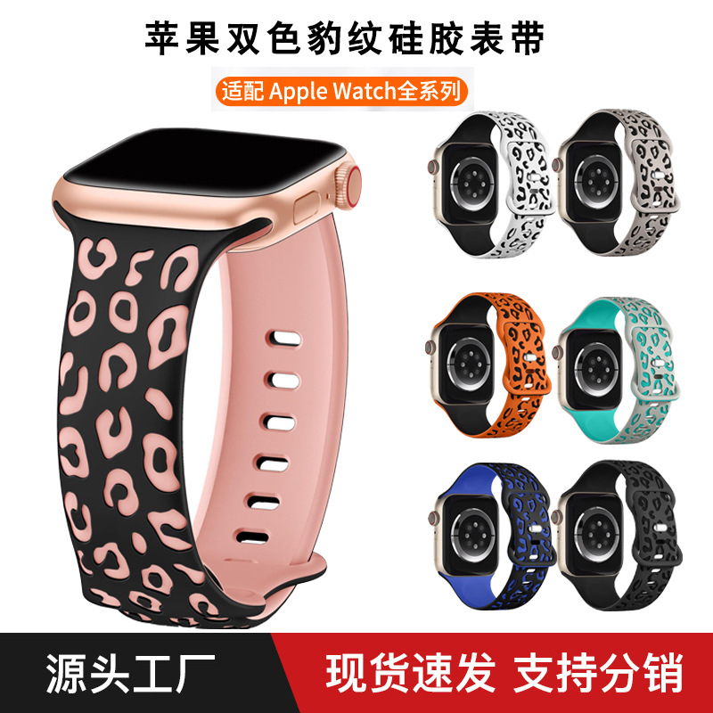 | nameOriginal | Suitable for Apple iwatch leopard print two-color carved silicone strap 38MM/42MM laser carved concave leopard print strap |