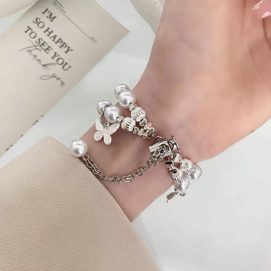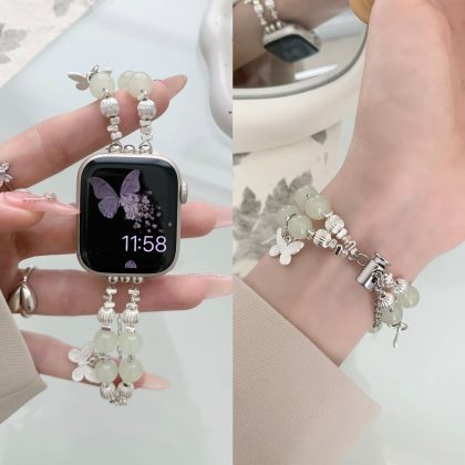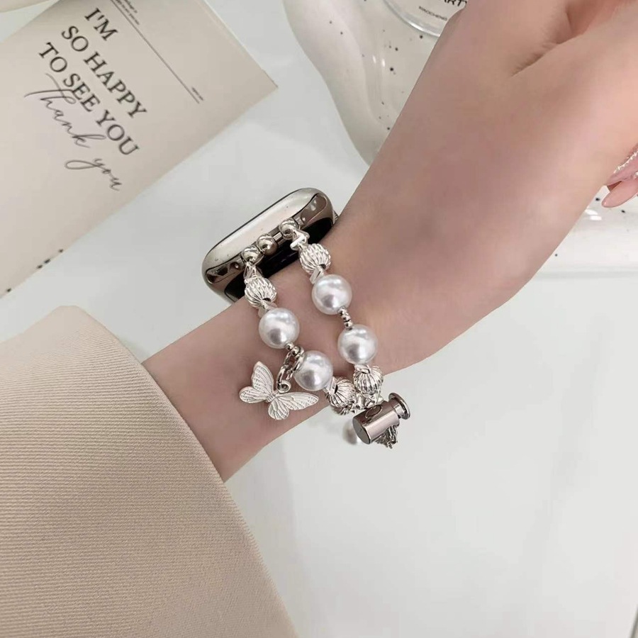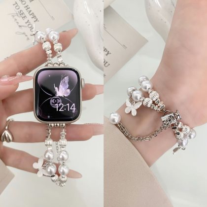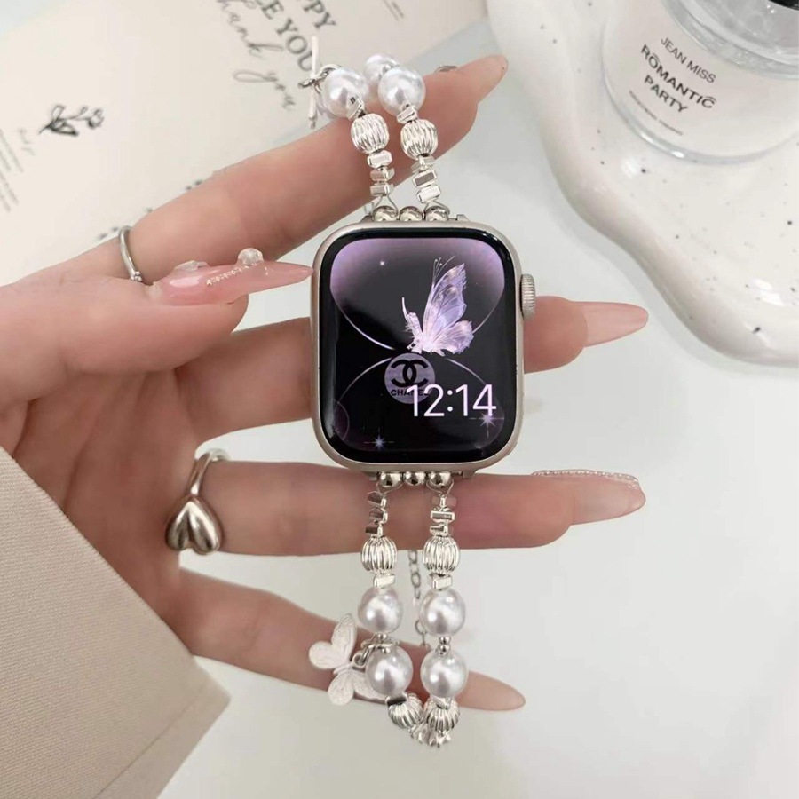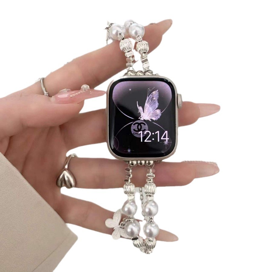 Suitable for Apple iwatch9 Watch Strap applewatch876se Pearl Butterfly Broken Silver Zipper Women