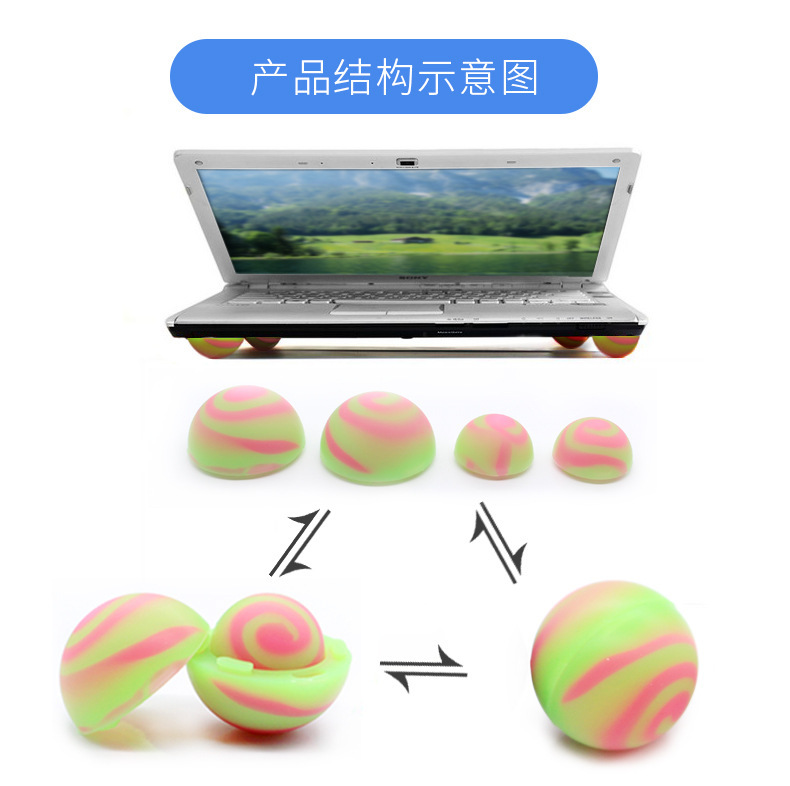 | nameOriginal | Suitable for Apple notebook four-piece silicone portable cooling ball cooling foot pad cooling ball bracket |