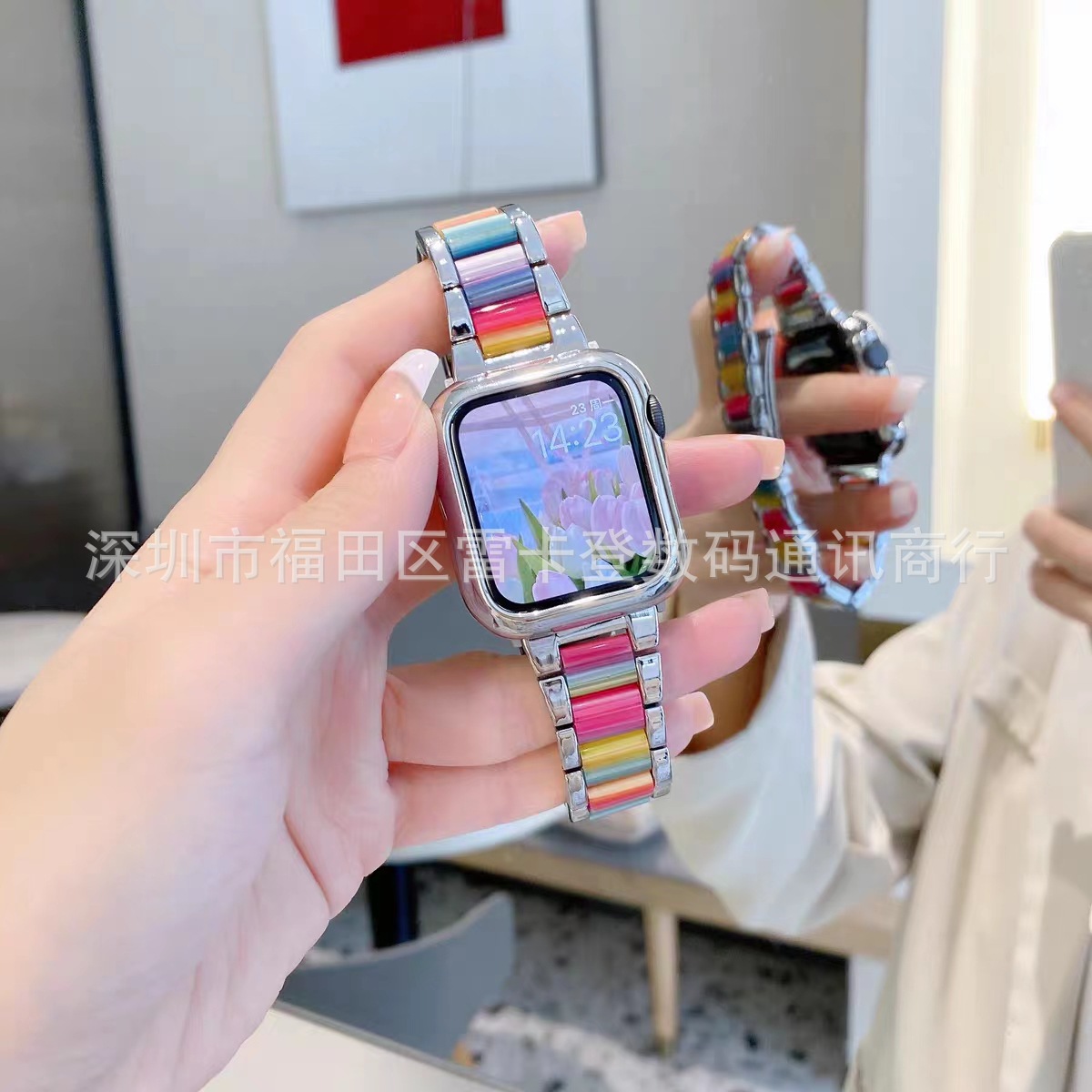 | nameOriginal | Suitable for Apple Three Bead Strap Inter Color Resin Rainbow Strap Samsung Universal 20MM22MM Folding Buckle Strap |