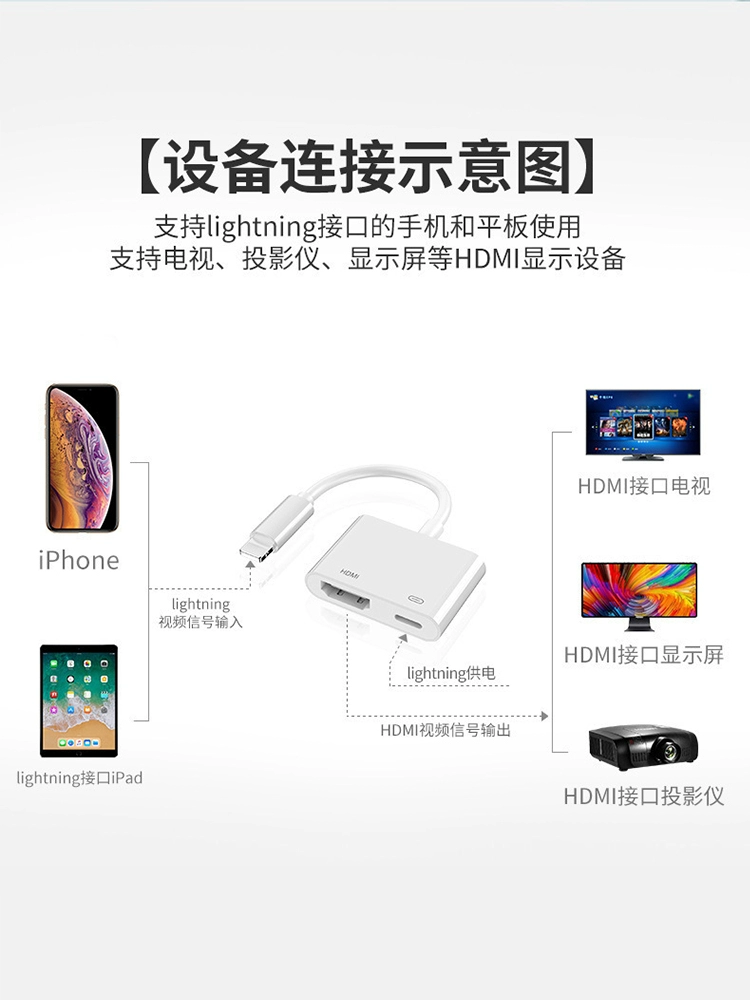 Suitable for Apple to HDMI converter lightning connection vga interface iPad tablet adapter projector TV same-screen projection cable display iphone mobile phone HD adapter cable
