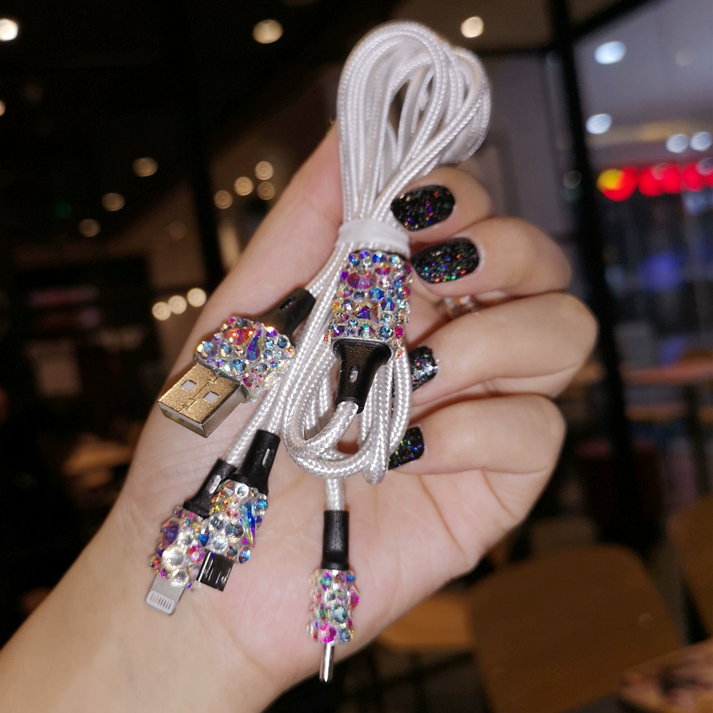 | nameOriginal | Suitable for Apple vivo Huawei oppo Android type-c mobile phone charging universal one-to-three rhinestone data cable |