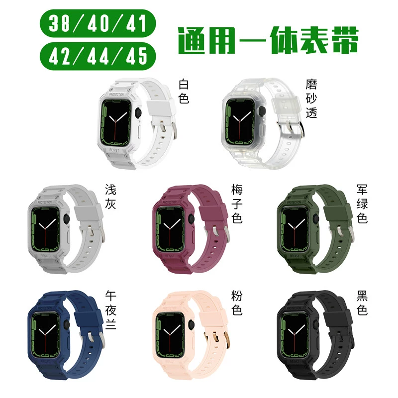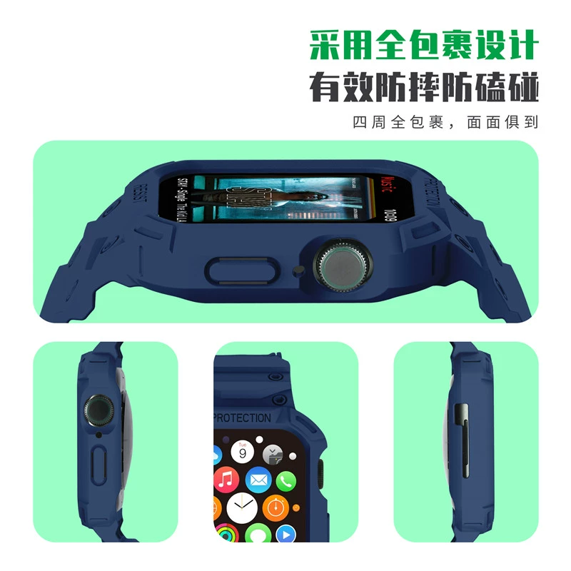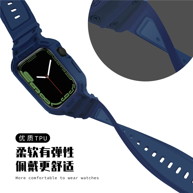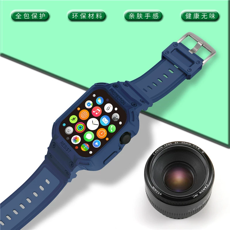 Suitable for Apple Watch 78 silicone strap iWatch6se armor anti-fall integrated 345 sports protective case for men and women