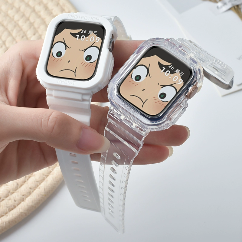 Suitable for Apple watch apple watch 9 generation 4 strap 3 in one 5 silicone s8 accessories se protective case iwatch8 trendy 6 men’s and women’s s7 sports ultra watch strap s6 replacement s5 wristband