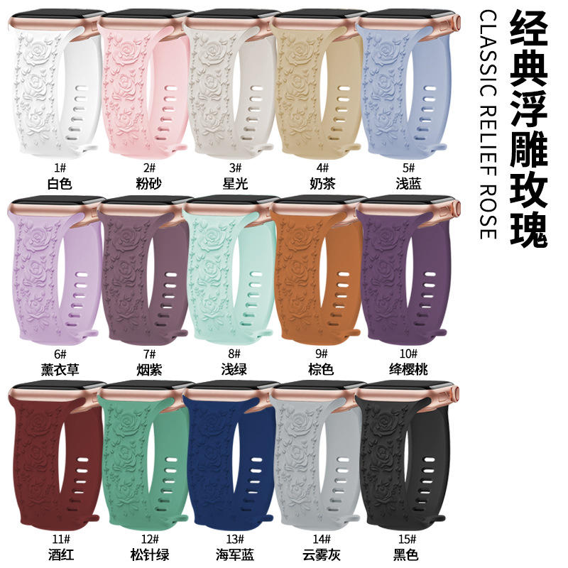 | nameOriginal | Suitable for Apple Watch band Big Rose relief Sports wristband Apple Watch 1-9 generation factory in stock |