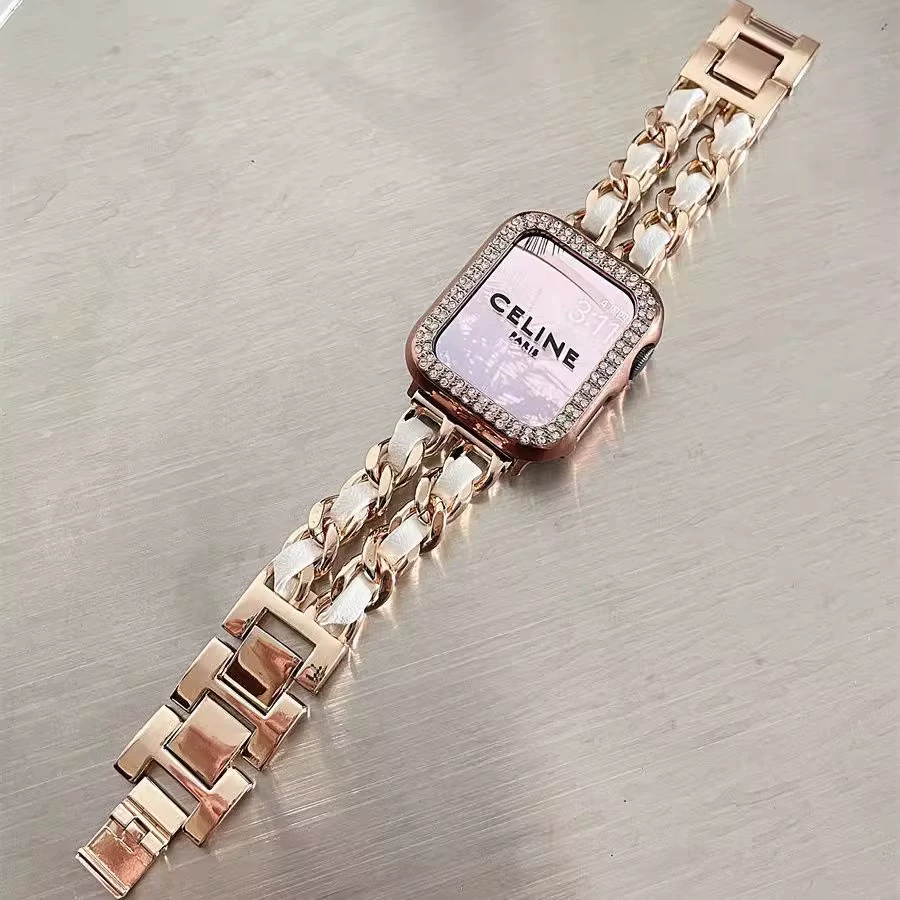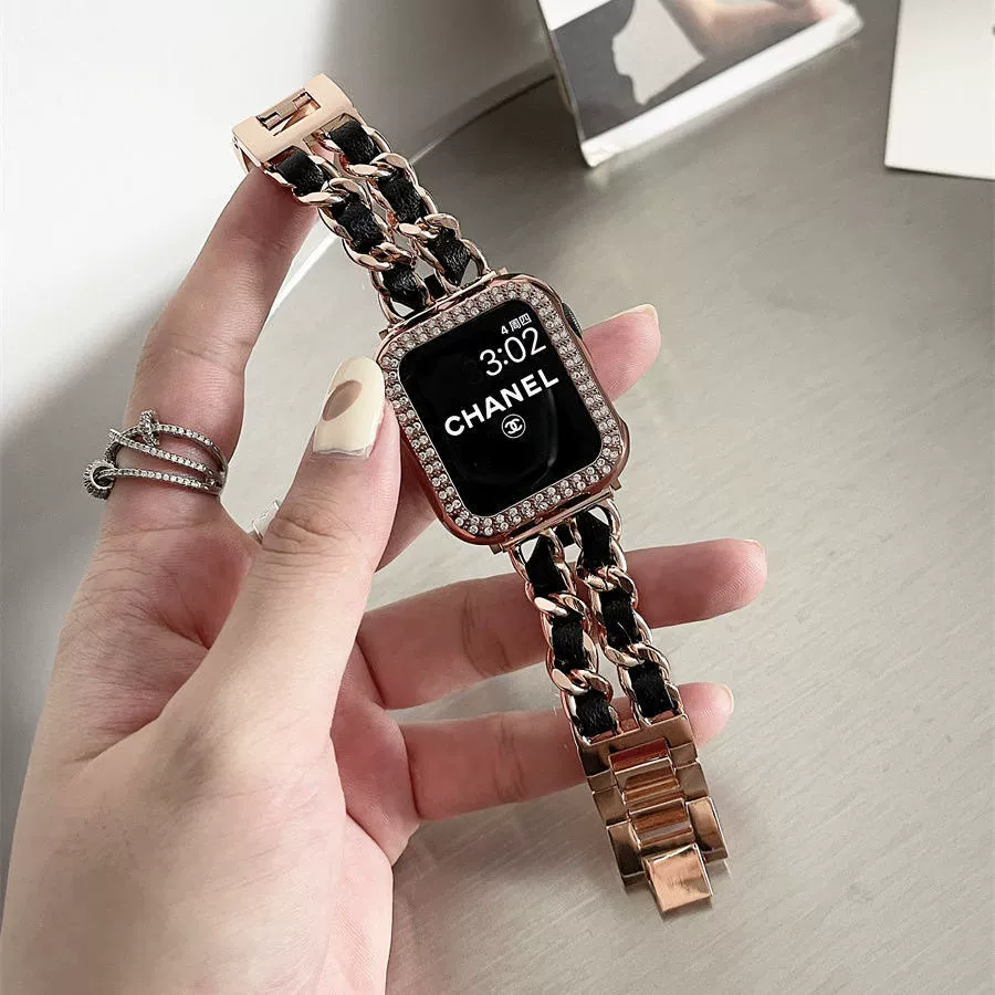 | nameOriginal | Suitable for Apple watch S9 strap iwatch9/7/6/5 generation applewatch8 watch strap s7 small fragrance s8 metal chain female ultra2 smart accessories s6 trendy protective shell wristband |