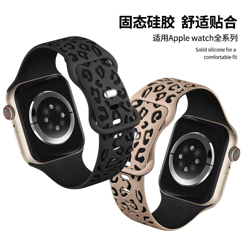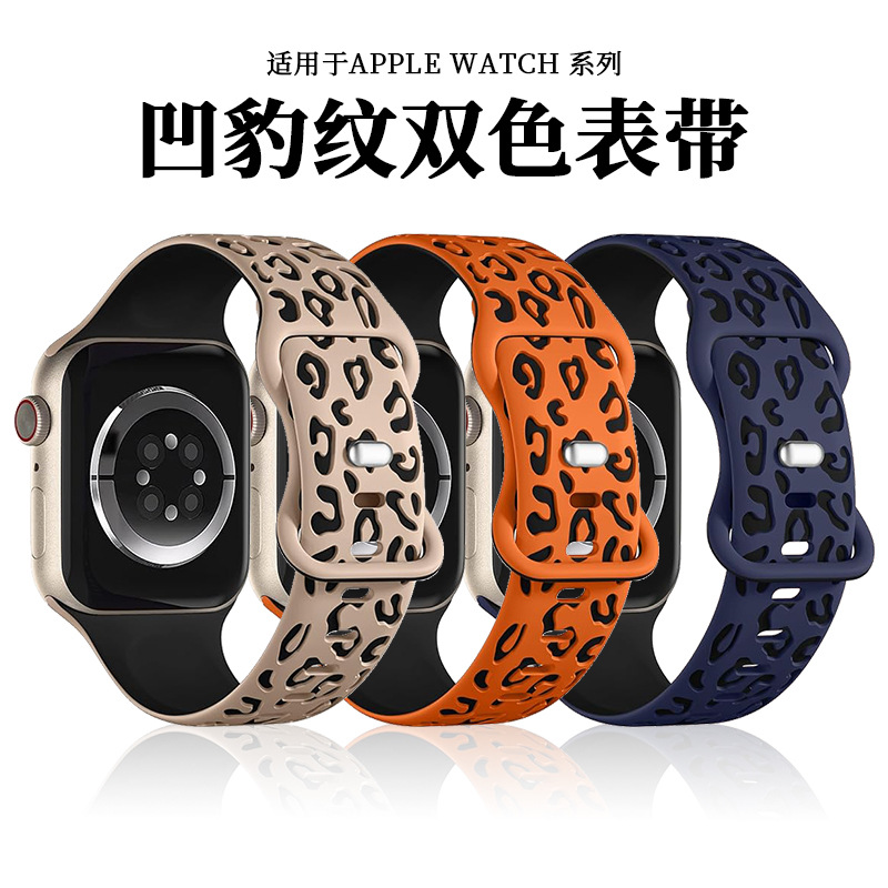 | nameOriginal | Suitable for Apple Watch S9ultra strap sports leopard print carved two-color strap Apple silicone strap |