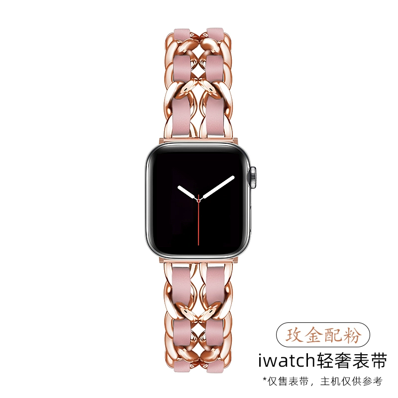 | nameOriginal | Suitable for Apple watch strap apple watch7/8/9 watch strap leather rope metal chain trendy fashion S5/s6/s7 female small fragrance iwatch3/4/SE/5/6 generation universal wristband |