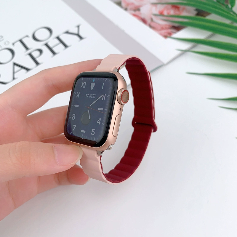 | nameOriginal | Suitable for apple watch10/8 strap apple s9 watch small waist silicone two-color magnetic strap iwatch9/7/6/5/4 sports se men and women summer ultra watch strap s10 trend |