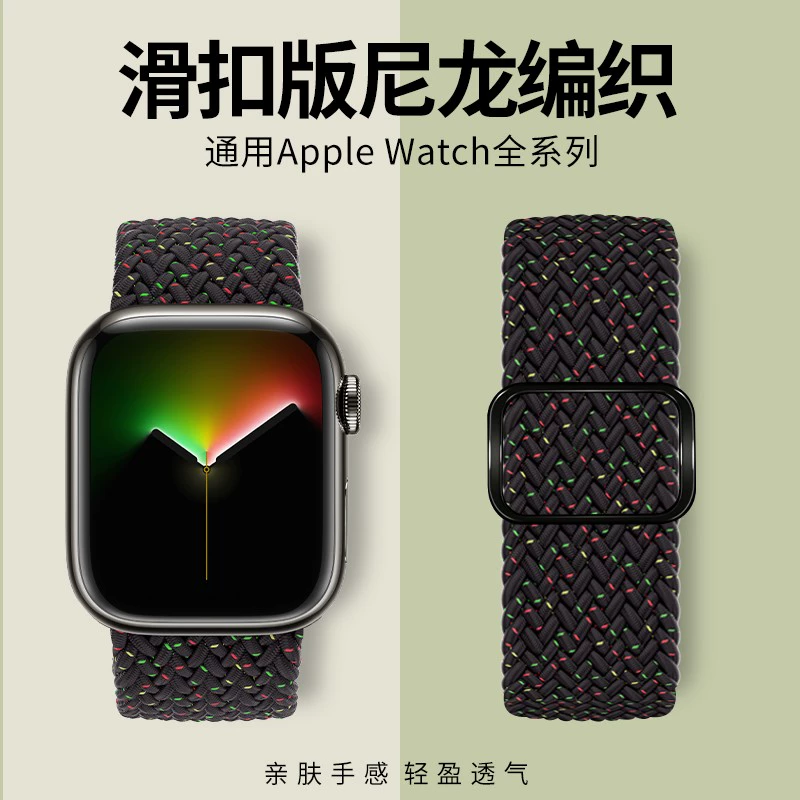 Suitable for apple watch7/8/s9/s10 strap nylon braided apple watch strap iwatch7/6/5/4/3/2/se slide buckle adjustable wrist strap