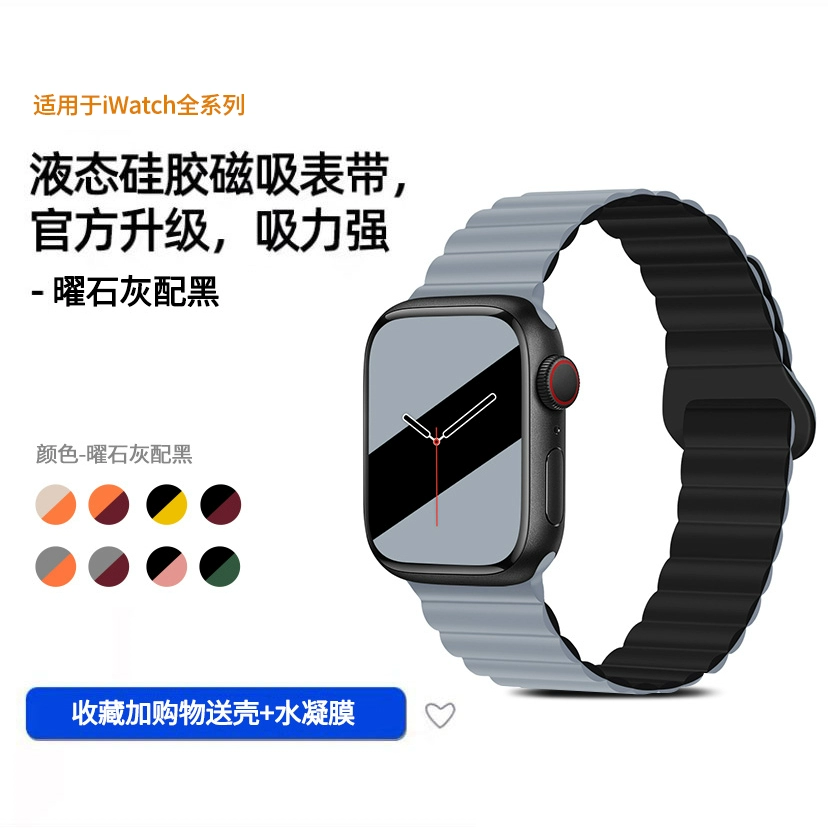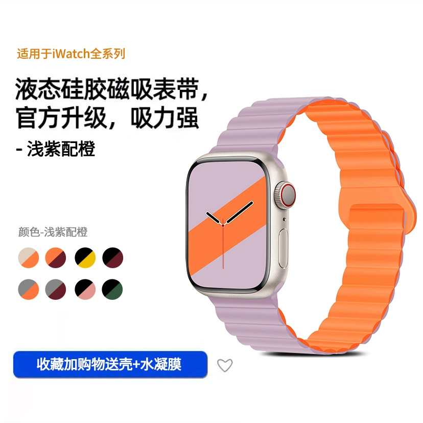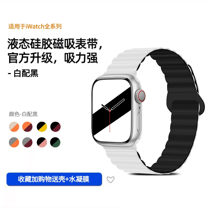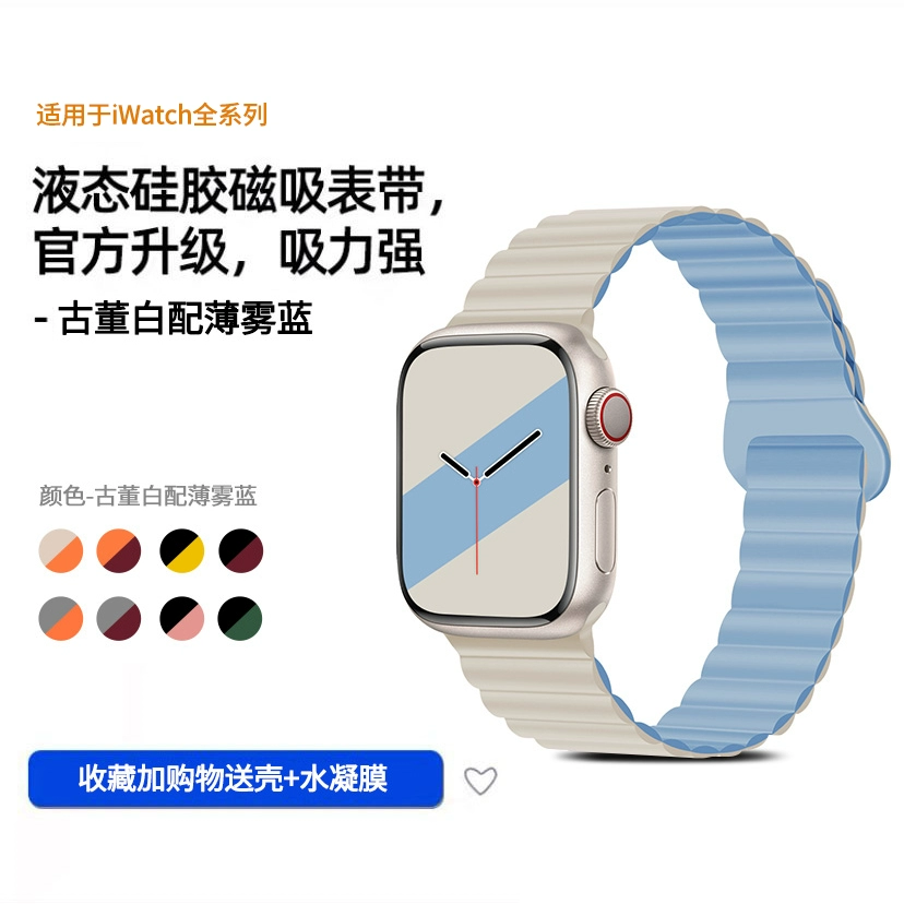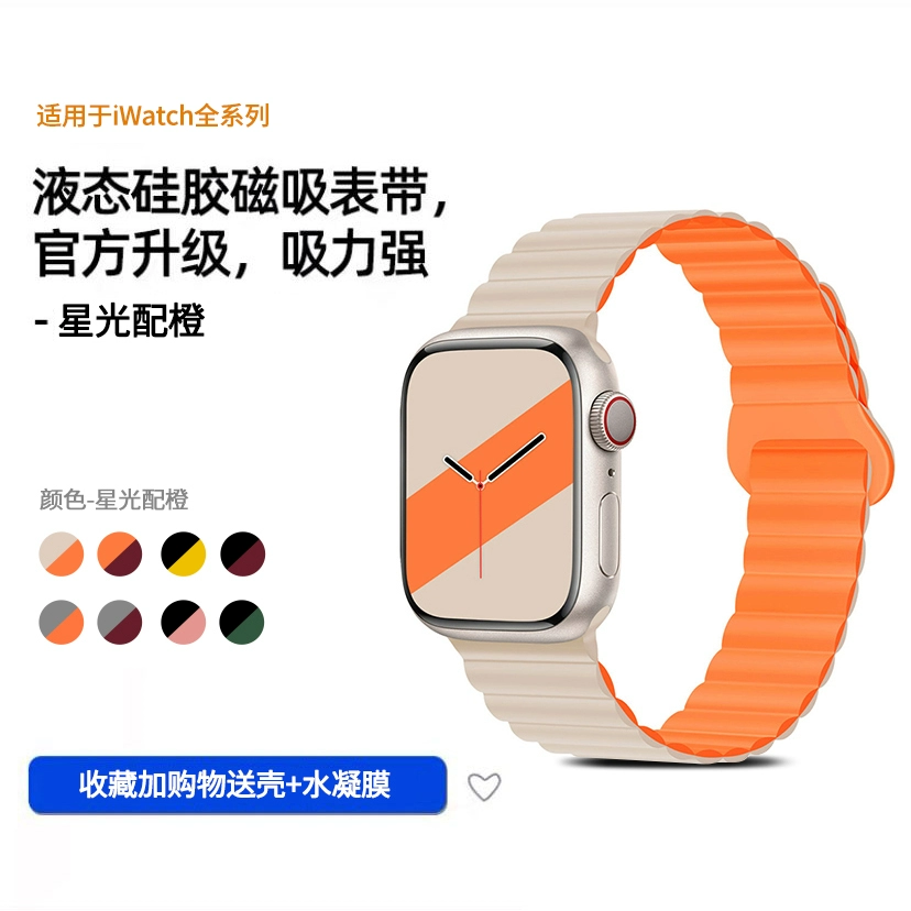 | nameOriginal | Suitable for apple watch7 strap Apple watch 8th generation iwatch5/se/6/3 silicone two-color creative sports magnetic 44/40/45/41mm men and women new summer advanced starlight color |