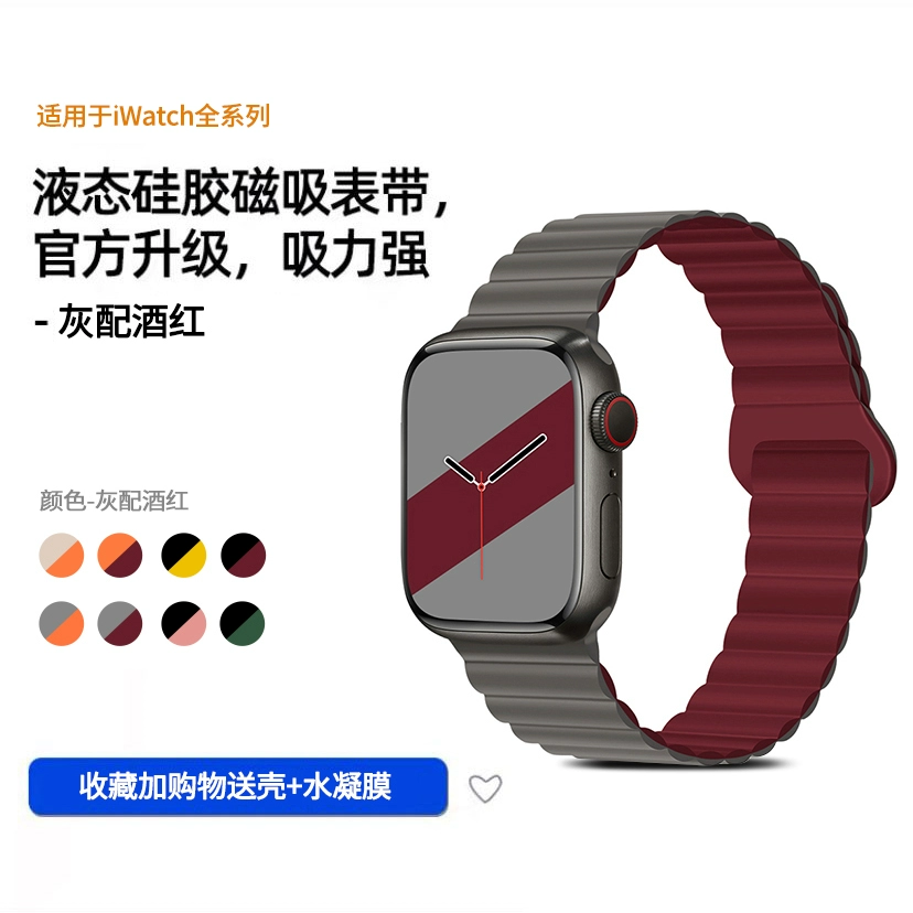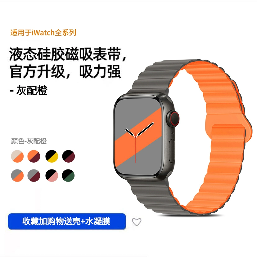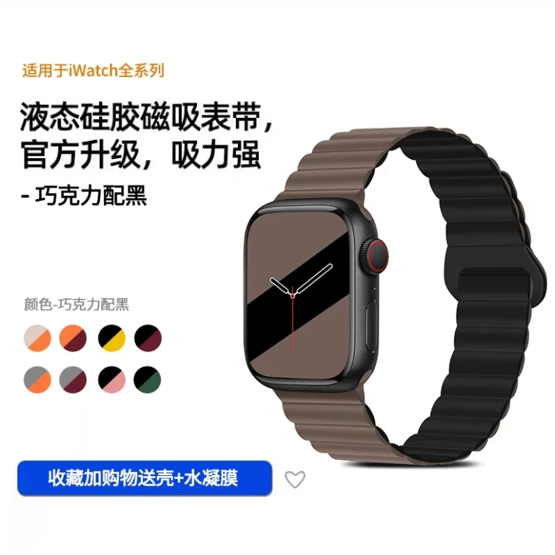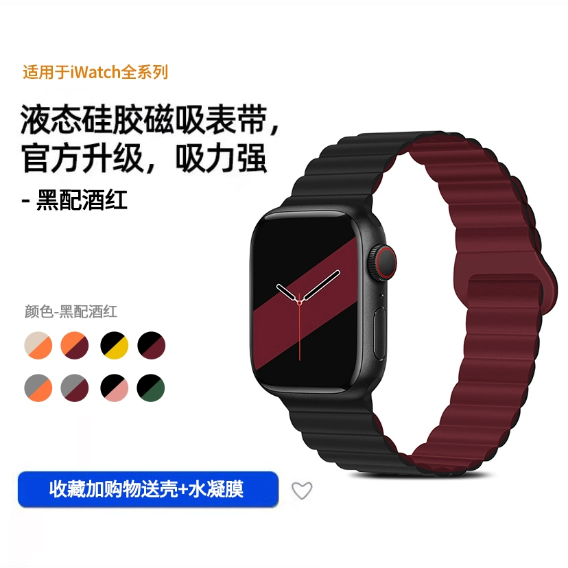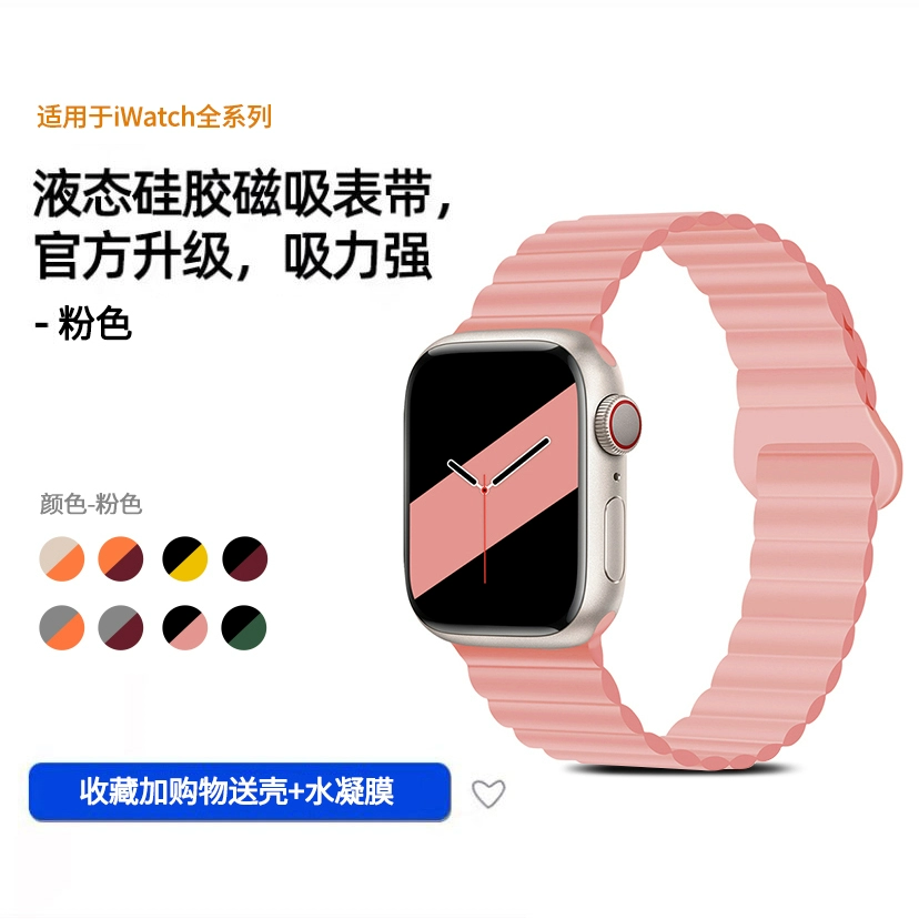 | nameOriginal | Suitable for apple watch7 strap Apple watch 8th generation iwatch5/se/6/3 silicone two-color creative sports magnetic 44/40/45/41mm men and women new summer advanced starlight color |