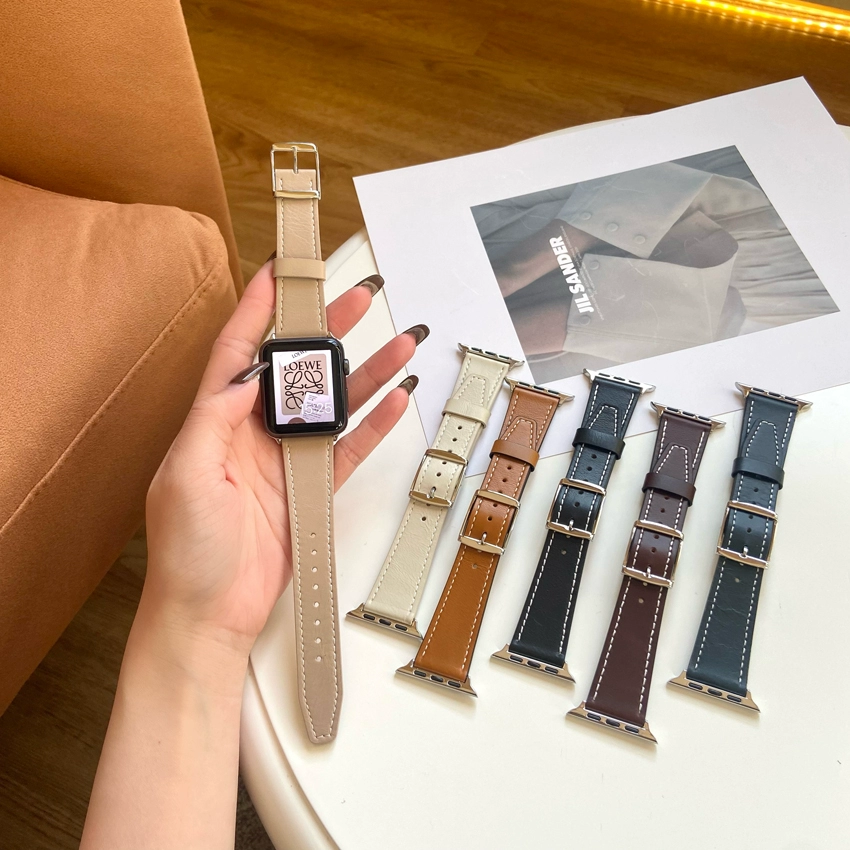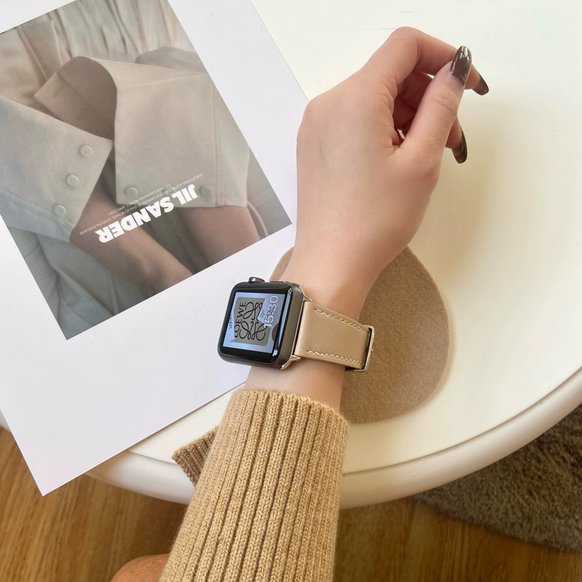 Suitable for apple watch7 strap iwatch6 strap Apple watch se/1/2/3/4/5 generation leather strap casual daily versatile oil wax leather women's style simple 41/45mm