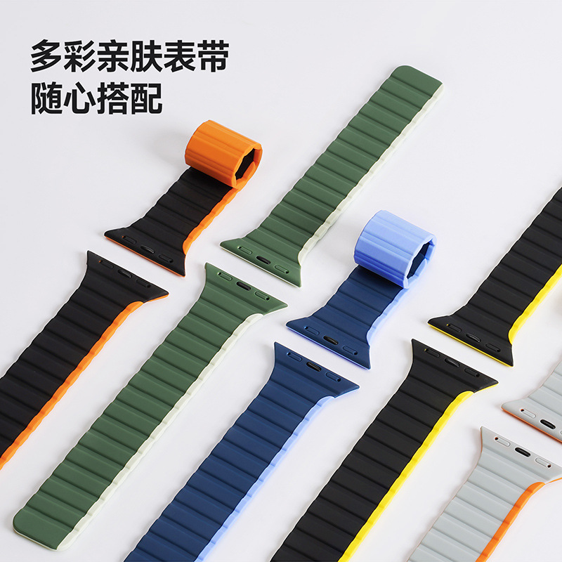 Suitable for AppleWatch two-color silicone strap wholesale iwatch1-8 magnetic waterproof strap New