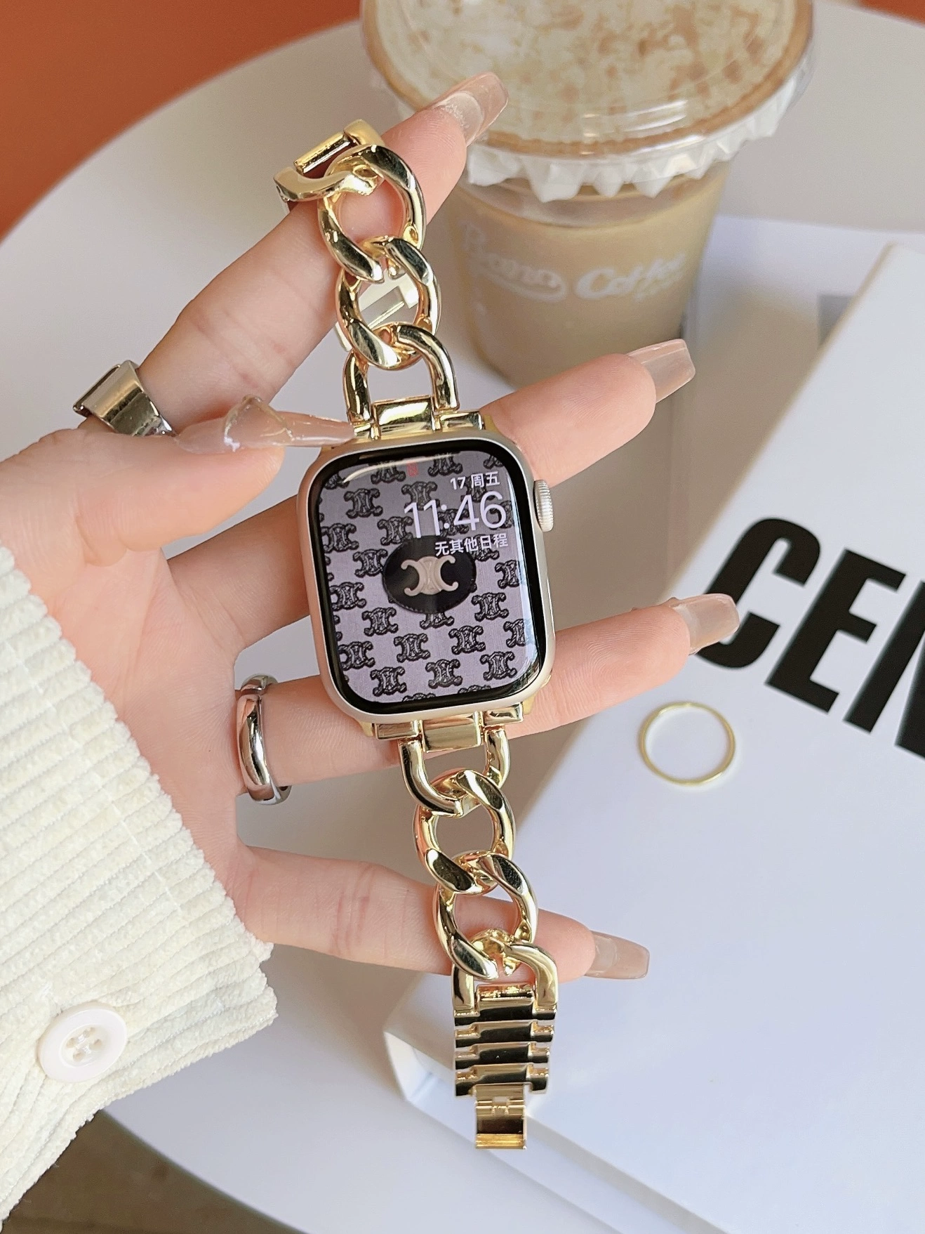 | nameOriginal | Suitable for applewatch8 strap apple watch strap iwatch7 stainless steel metal watch chain chain steel strap denim small fragrance style s6/5/4 generation se high-end 41mm trendy women's bracelet |