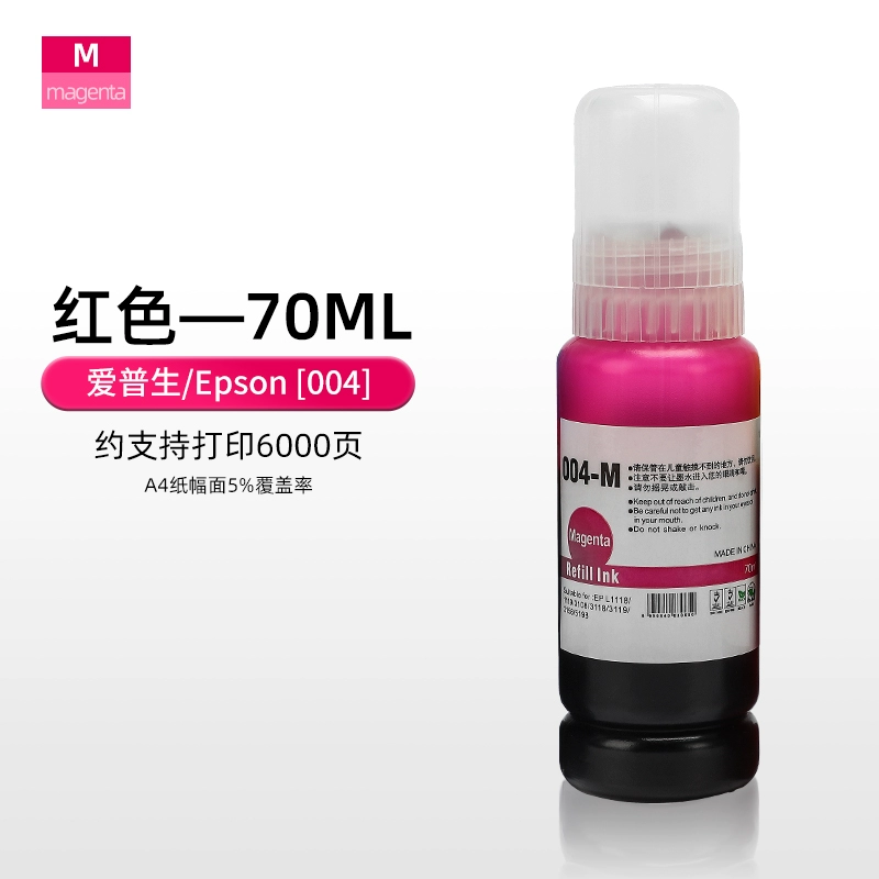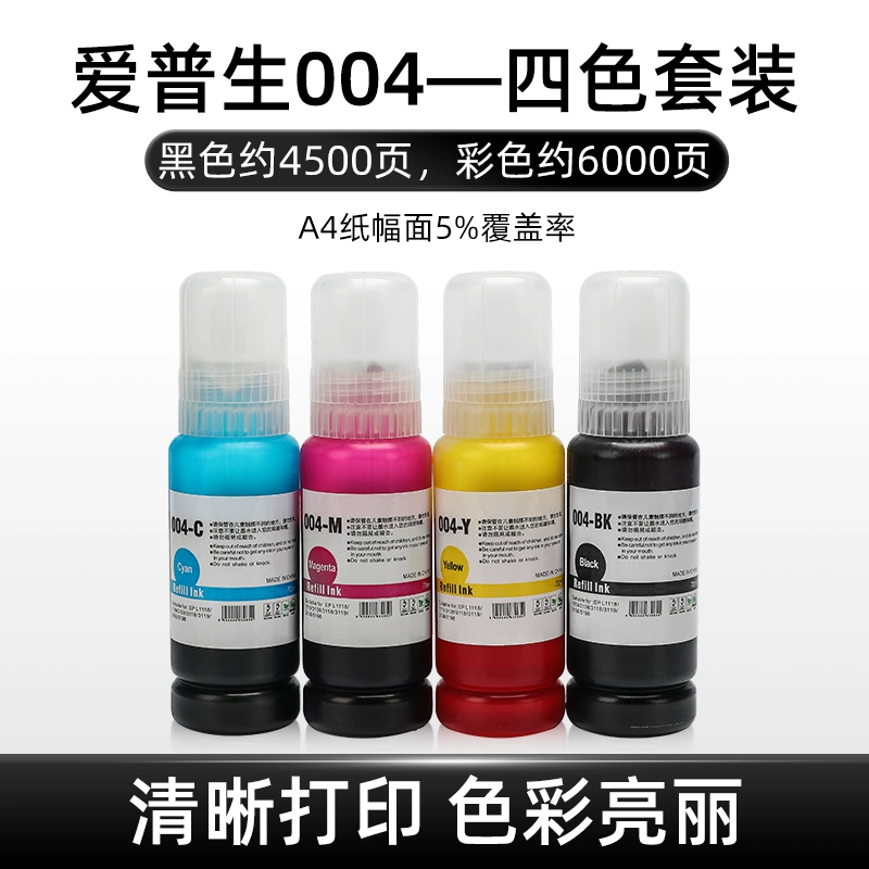 | nameOriginal | Suitable for Epson 004 ink 4 colors L1118 L1119 L3115 L3116 L3117 L3118 L3119 L3153 L3158 5198 black color continuous printer refill |