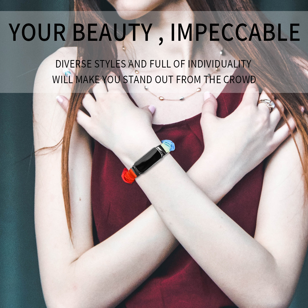 Suitable for Fitbit Luxe smart watch wristband polyester wreath hair ring elastic multi-color printed strap