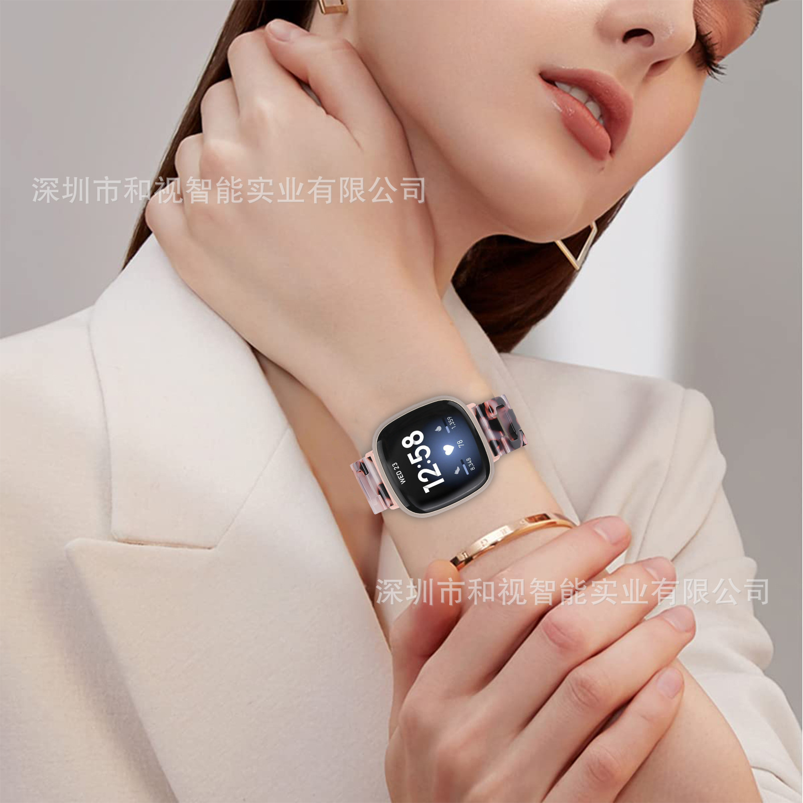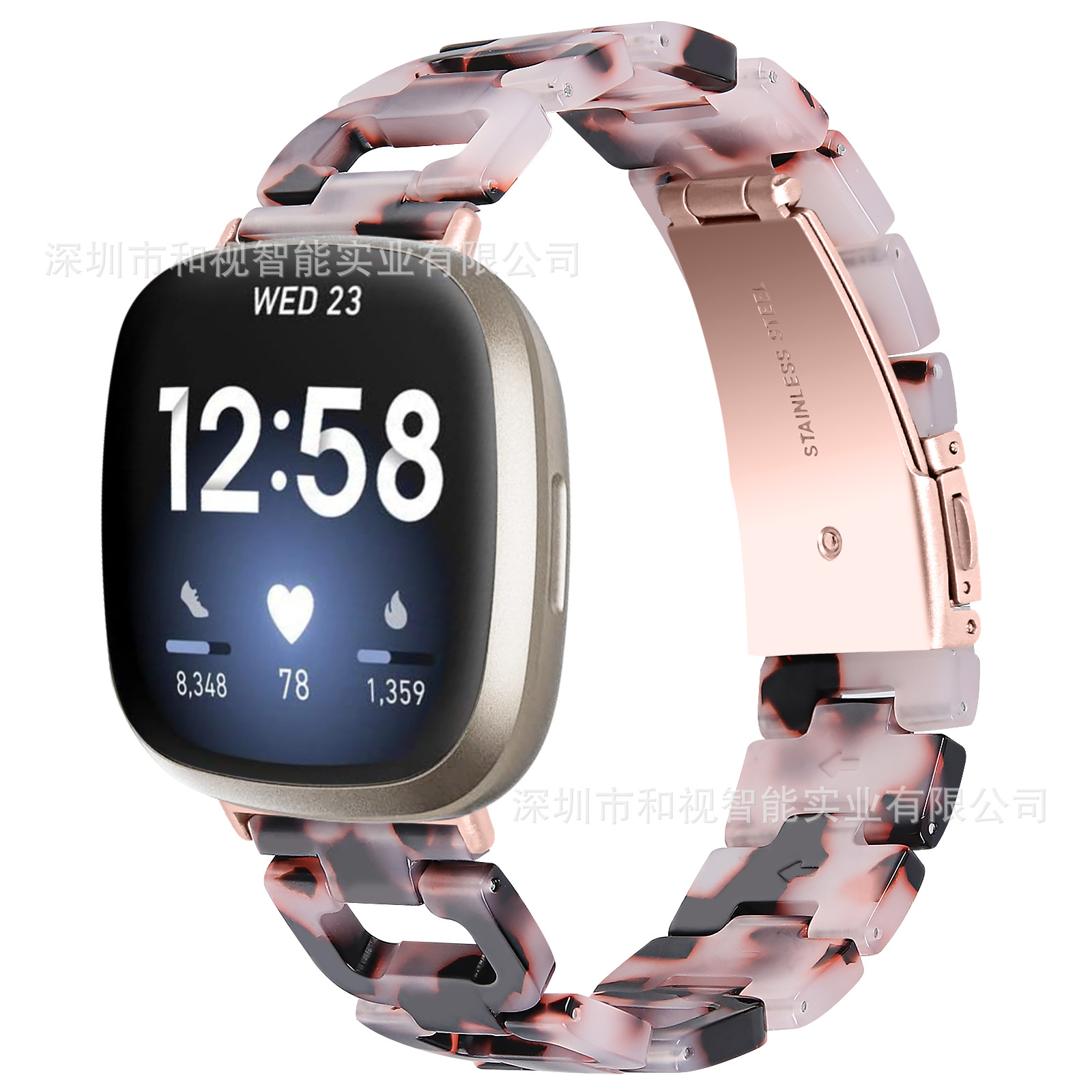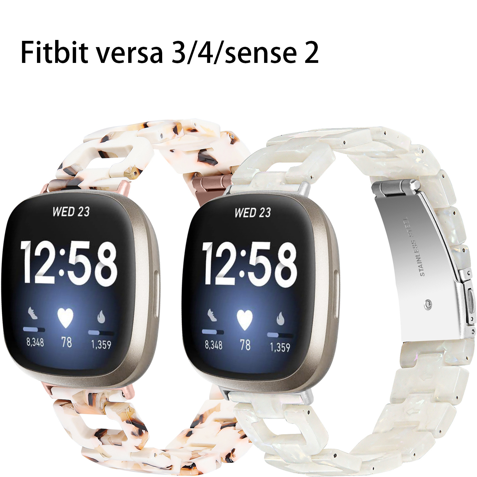 | nameOriginal | Suitable for Fitbit versa3/4/sense2 D-type resin watch strap acrylic new stainless steel buckle |
