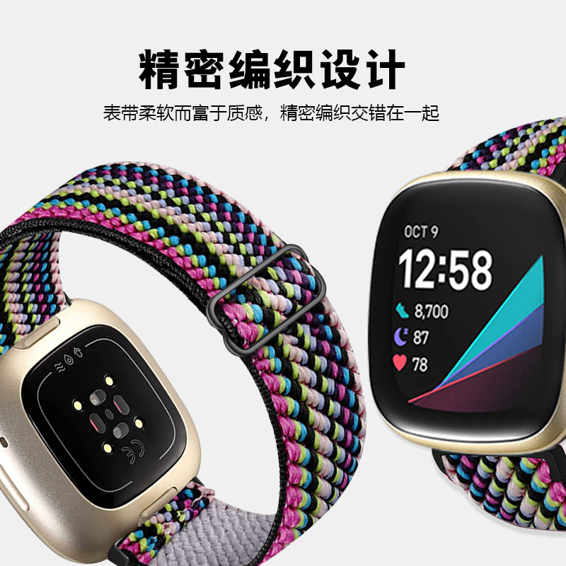 Suitable for fitbit Versa3 Phoebe woven strap adjustable buckle nylon elastic wrist strap cross-border watch strap