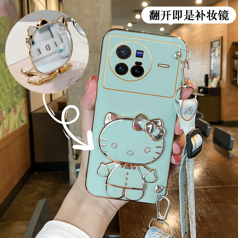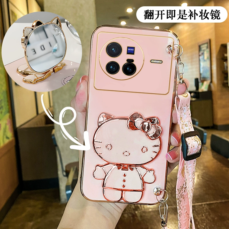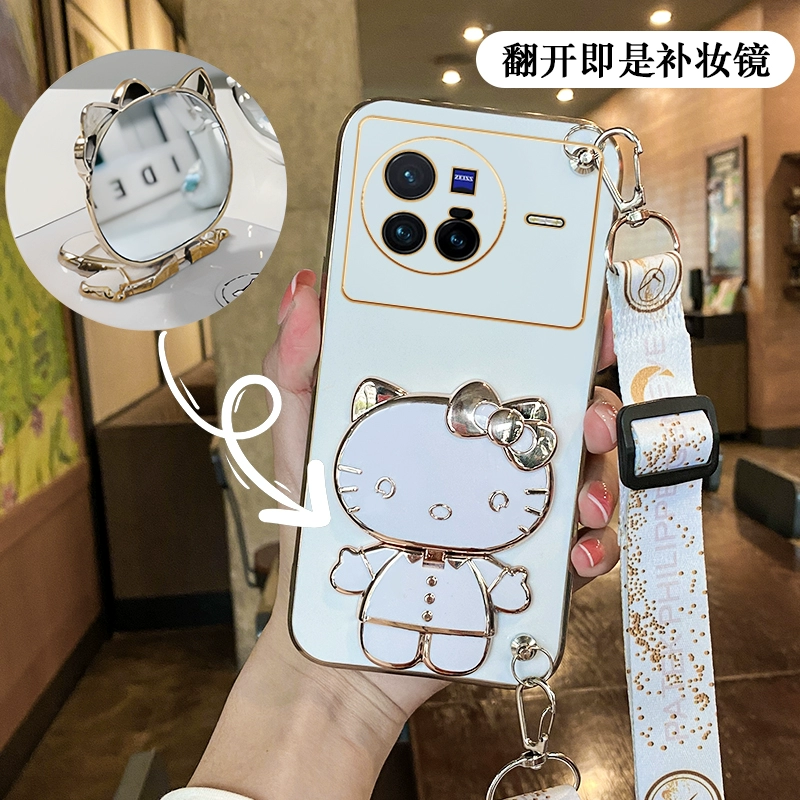Suitable for Hello Kitty vivox80 mobile phone case magnetic patch x90pro mirror with stand x70 can be worn crossbody x60 strap x50 lanyard x30 lens full package x27 anti-fall x23/x100 silicone