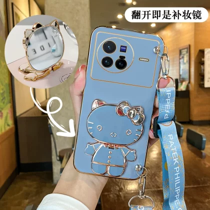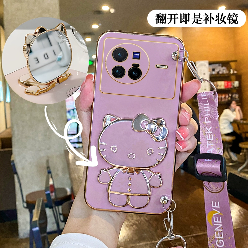 Suitable for Hello Kitty vivox80 mobile phone case magnetic patch x90pro mirror with stand x70 can be worn cross-body x60 strap x50 lanyard x30 lens full package x27 anti-fall x23/x100 silicone