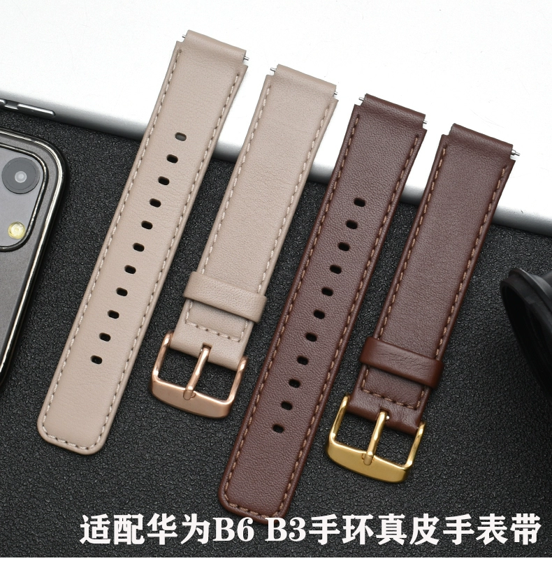 Suitable for Huawei B6 smart bracelet genuine leather watch strap B3 mocha brown first layer calfskin watch chain for men and women 16mm