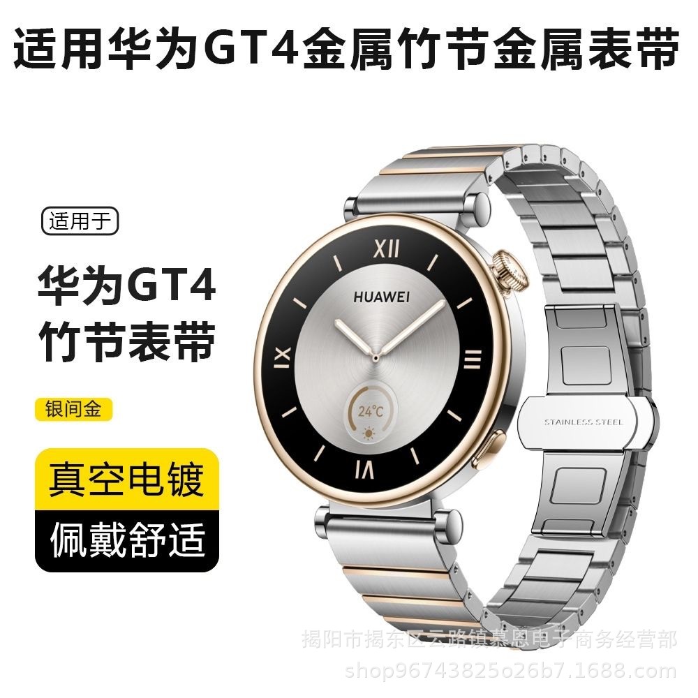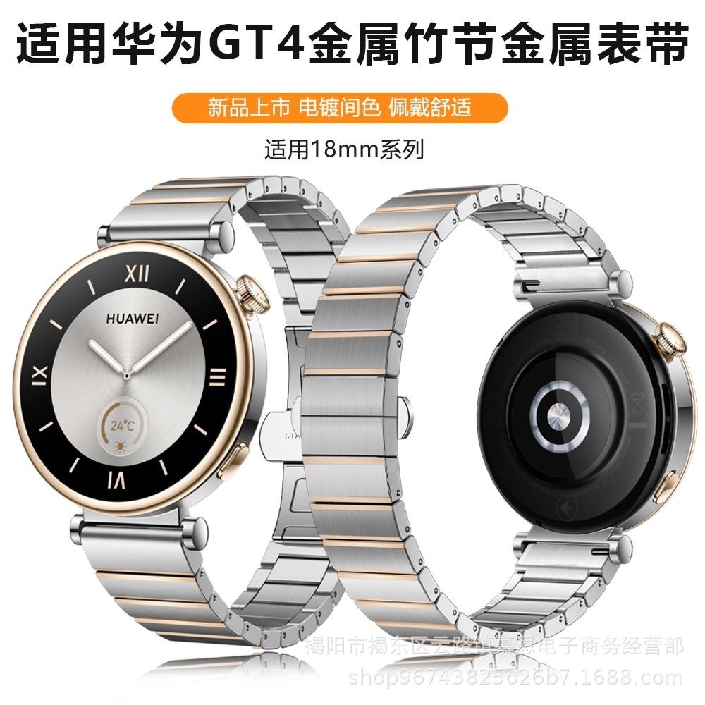 Suitable for Huawei gt4 bamboo steel belt butterfly buckle GT441mm women's new Silver Room gold 18mm metal watch strap
