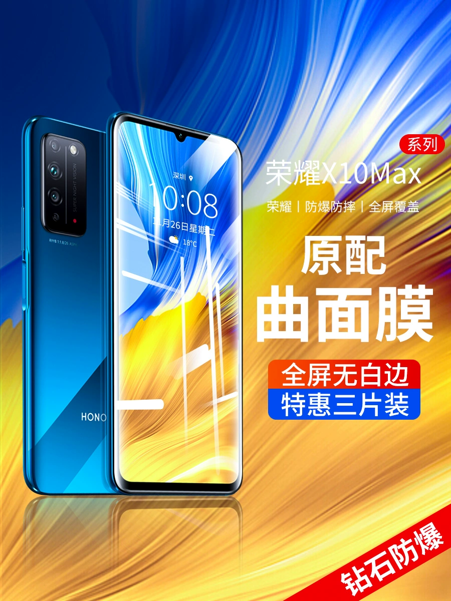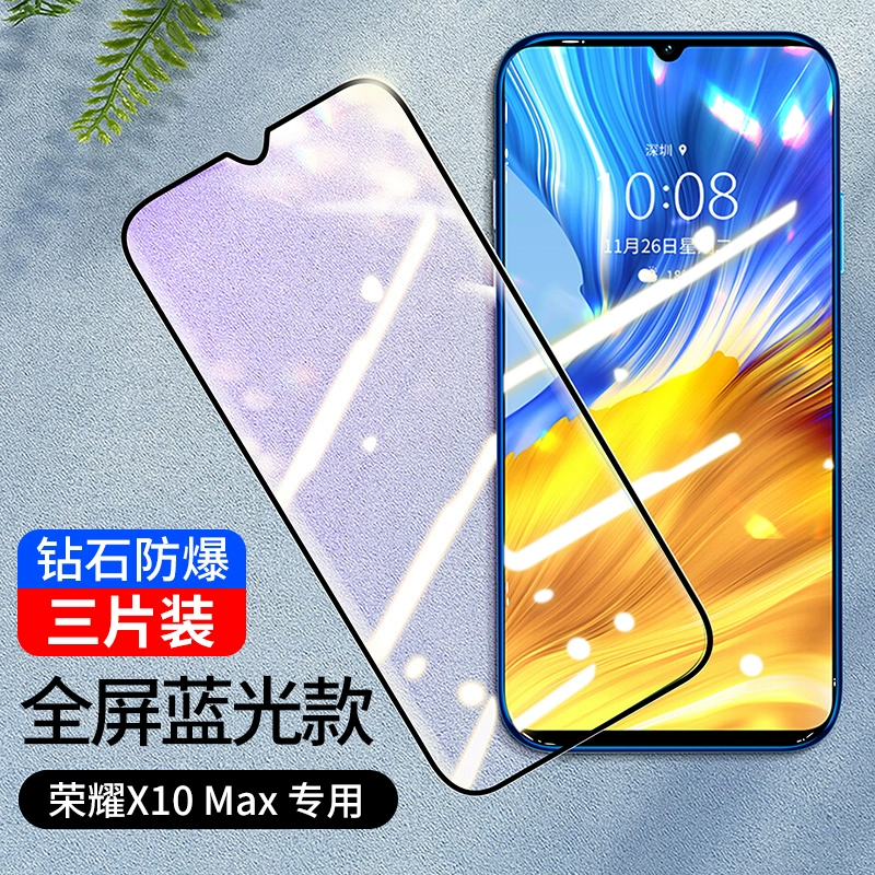 Suitable for Huawei Honor x10max tempered film Honor x10max mobile phone film 10xmax full screen coverage x10max no white edge x10 film anti-blue light max/honor explosion-proof protection