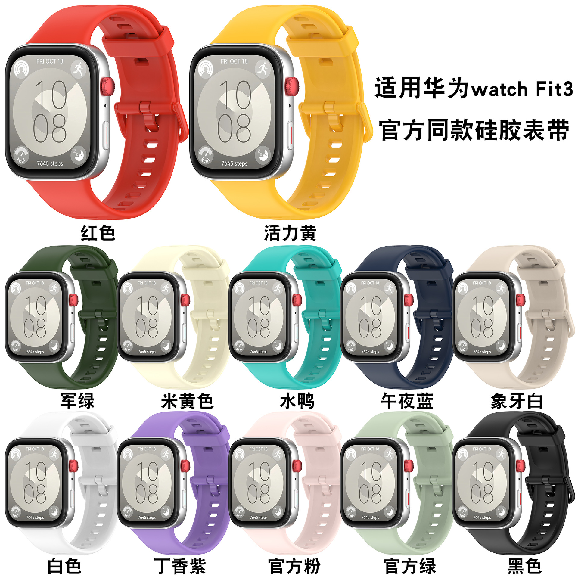 | nameOriginal | Suitable for Huawei HUAWEI watch fit3 smart watch metal plug-in same color buckle silicone strap |