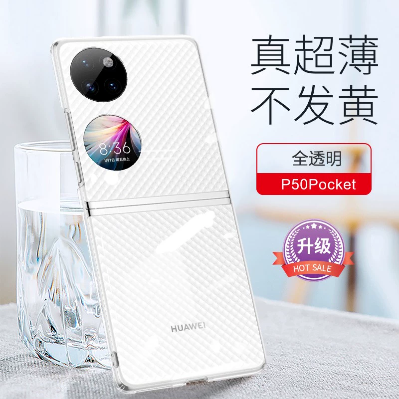 Suitable for Huawei p50pocket mobile phone case folding screen hard shell new ultra-thin transparent protective cover p50pocket treasure box lens anti-fall high-end simple mobile phone case for men and women