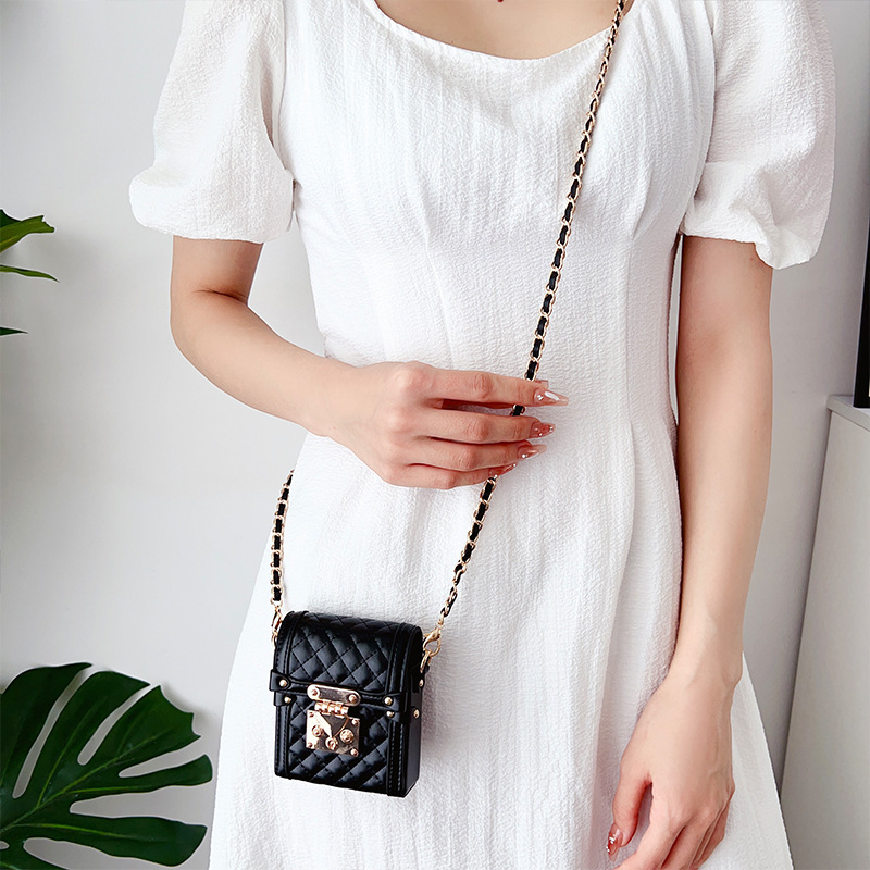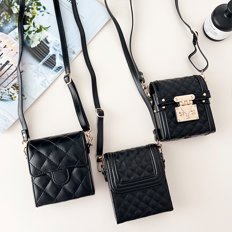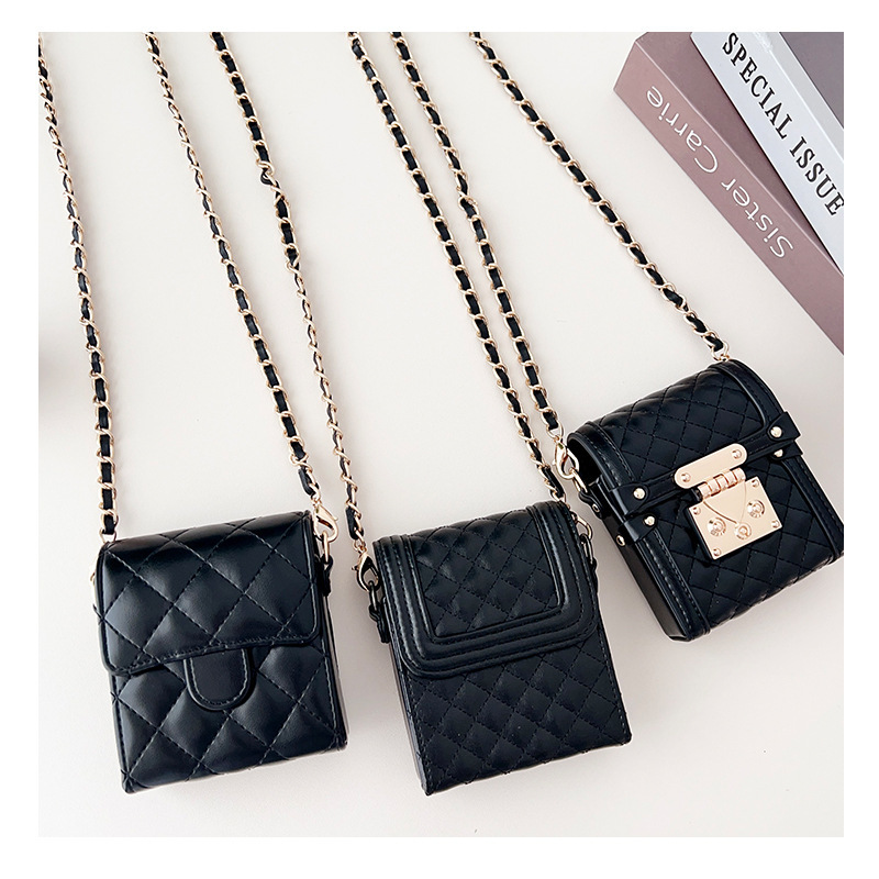 Suitable for ins Japanese and Korean rhombus folding screen mobile phone case bag shoulder bag crossbody chain fashion simple coin purse