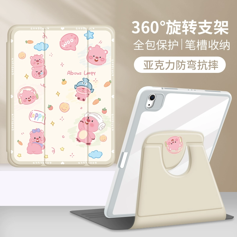 | nameOriginal | Suitable for ipadpro protective case air5 protective case 3 Apple 2024 tablet 2018 Beaver Pink 10.9 generation 2022 swivel 8 anti-bend 4 fall mini6 all-inclusive 7 with pen slot 12.9 female |