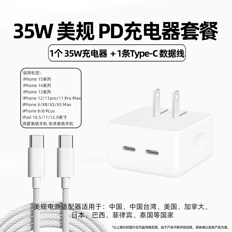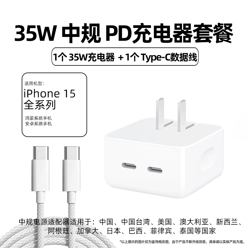 Applicable to iPhone15 charger head 35W Apple 14 data cable 13promax genuine 12 plug x mobile XR rushing XS fast charging pd