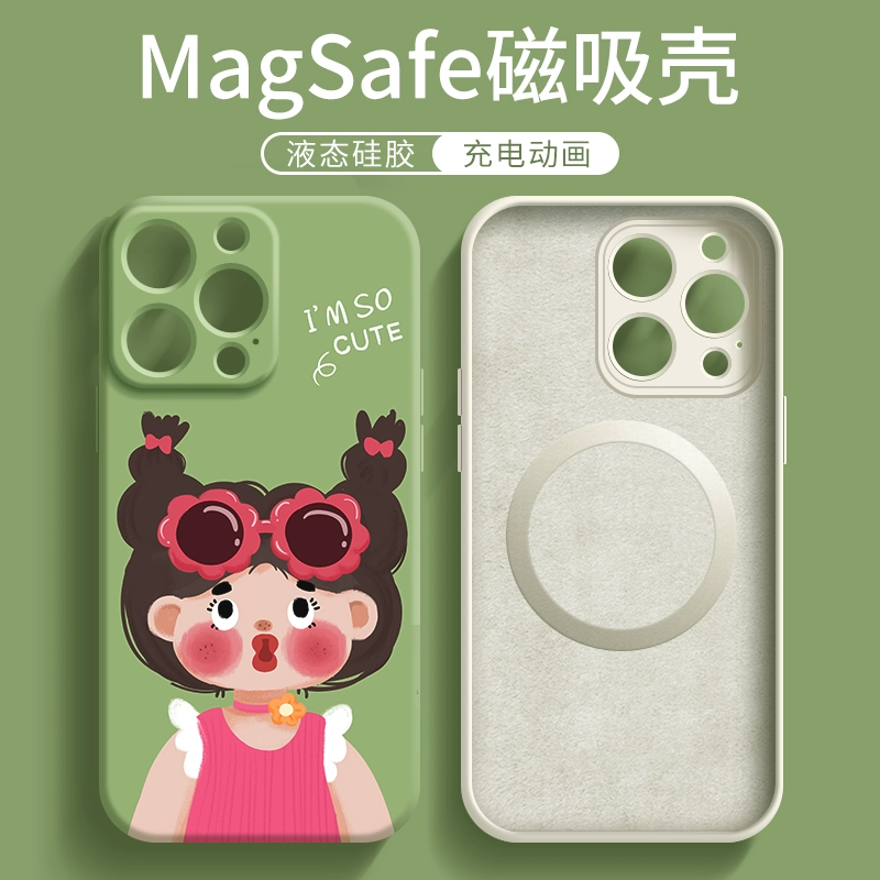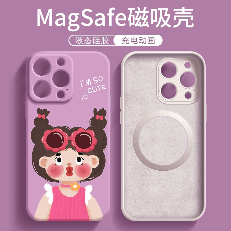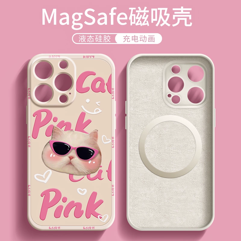 | nameOriginal | Suitable for iPhone15 mobile phone case new magsafe magnetic charging Apple 15promax silicone all-inclusive anti-fall 14pro female model cute 13pm sunglasses cat 12 pink plus male |