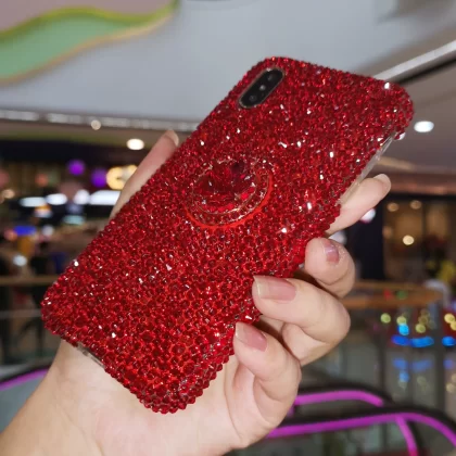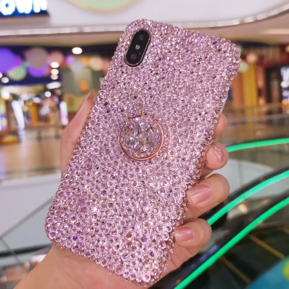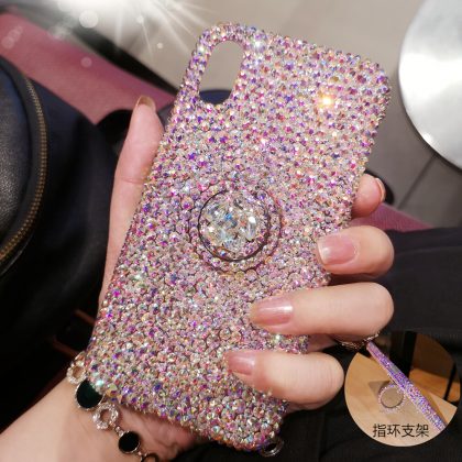 Suitable for iPhone15pro max Apple 14 mobile phone case luxury rhinestone 11 ring stand Xs protective cover 13 all-inclusive 8plus anti-fall 12 women