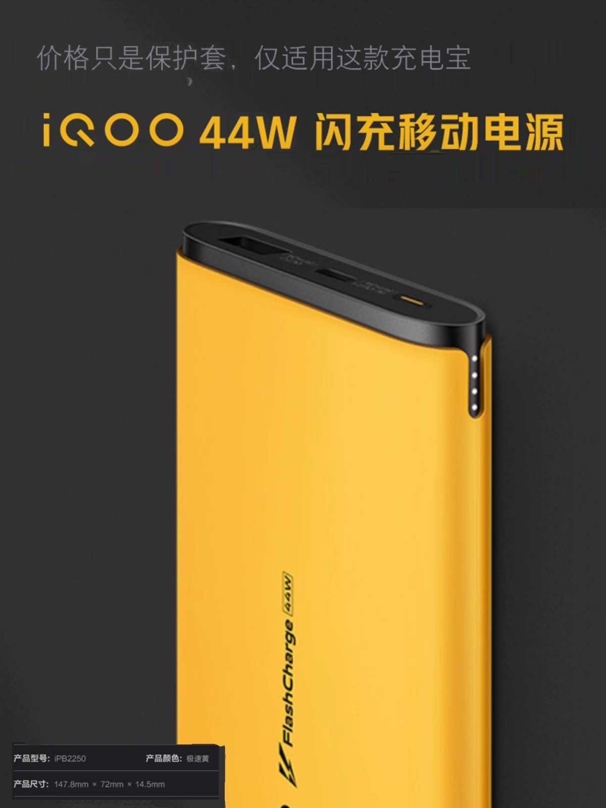Suitable for iQOO 44W flash charging mobile power supply protective case leather case fast charging power bank storage bag double layer storage cable
