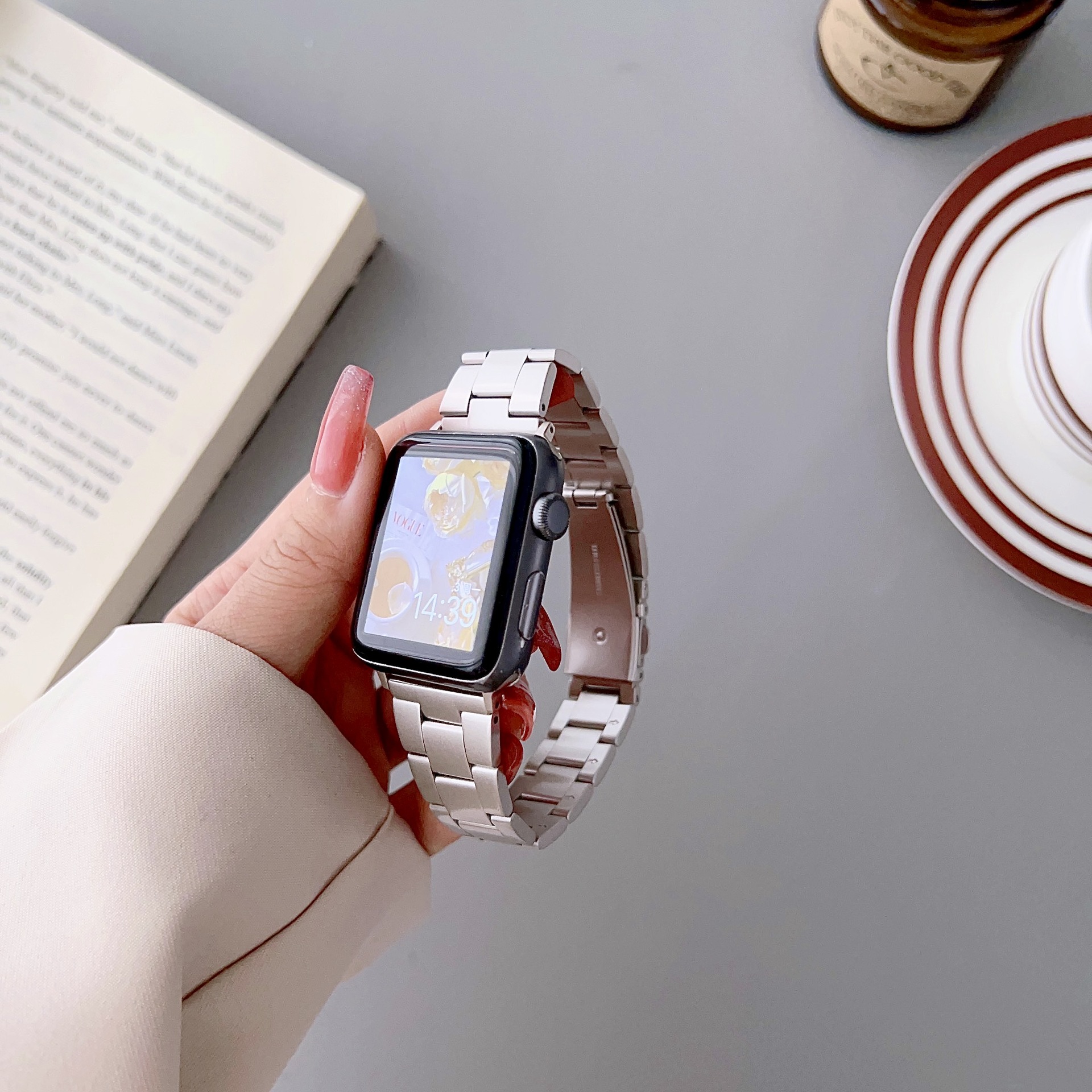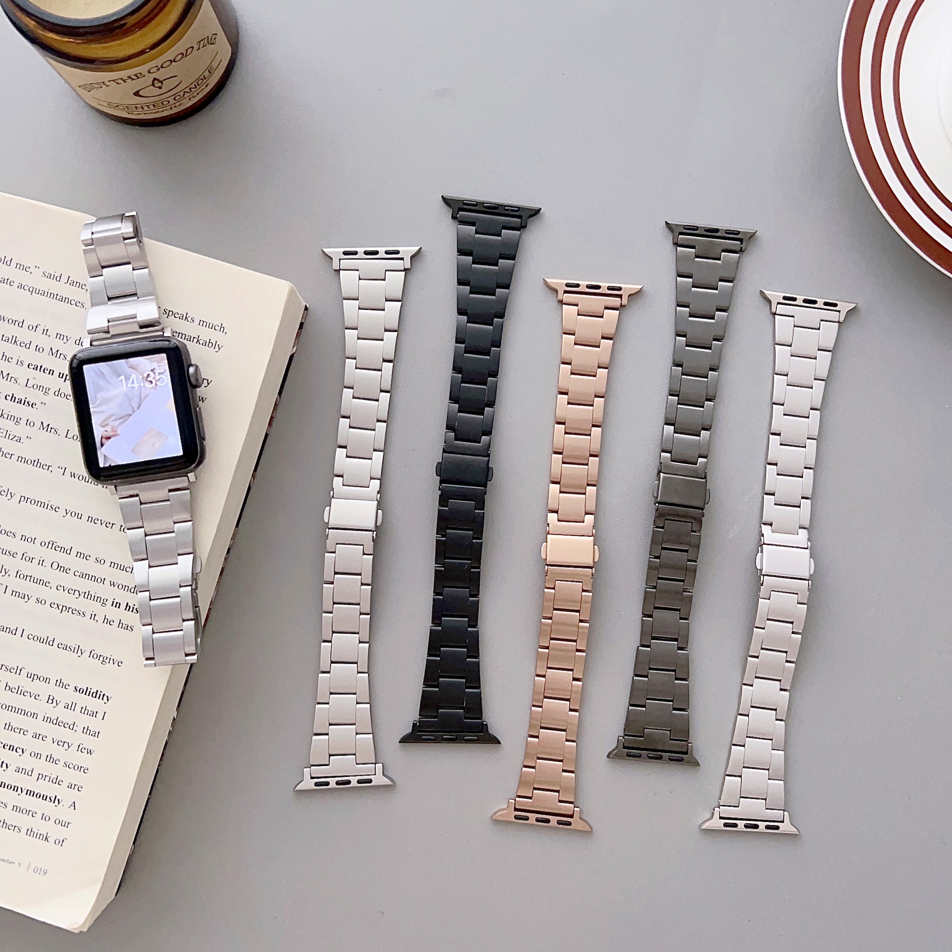 Suitable for iwatch se wristband Apple 4/5/6/7/8 generation Watch self-removal small waist three steel bands