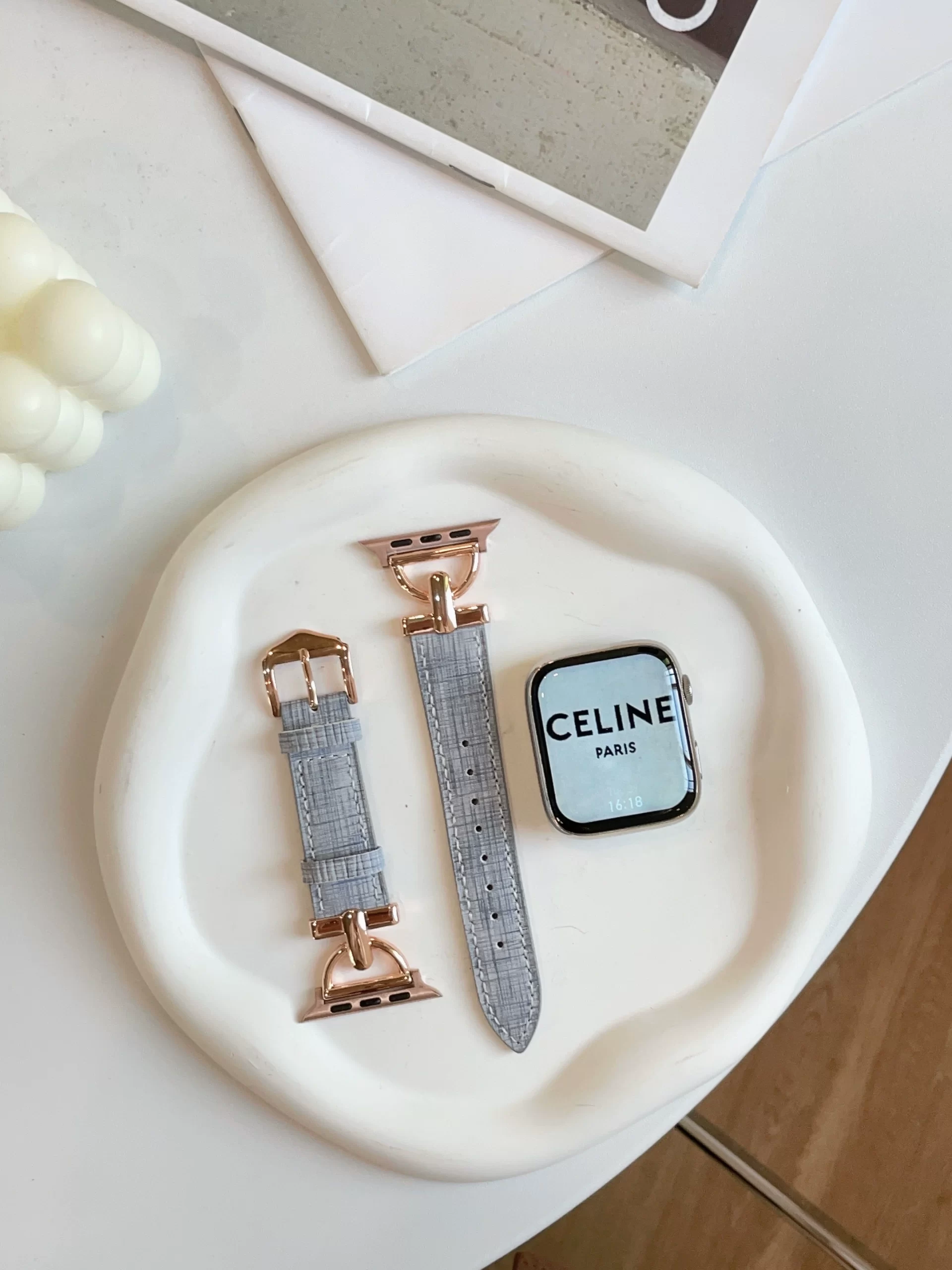 | nameOriginal | Suitable for iwatch strap applewatch apple watch strap 4/5/6/s7/se/8/9 generation plaid ins style s8 leather ultra summer small fragrance style 42/40mm female watch7 |