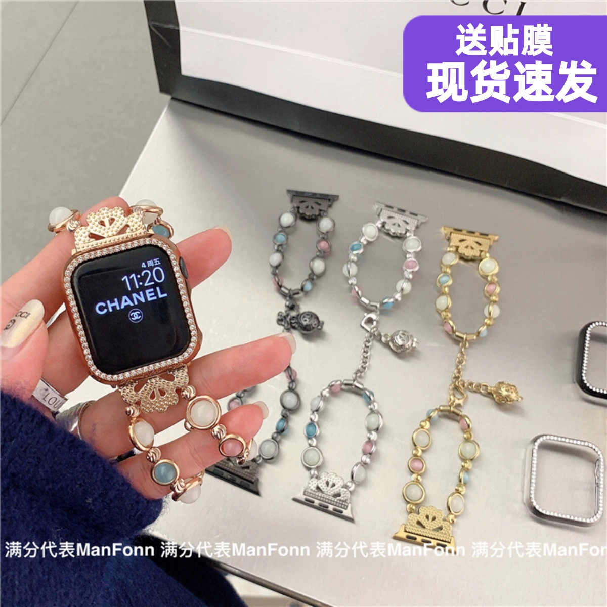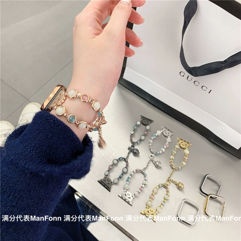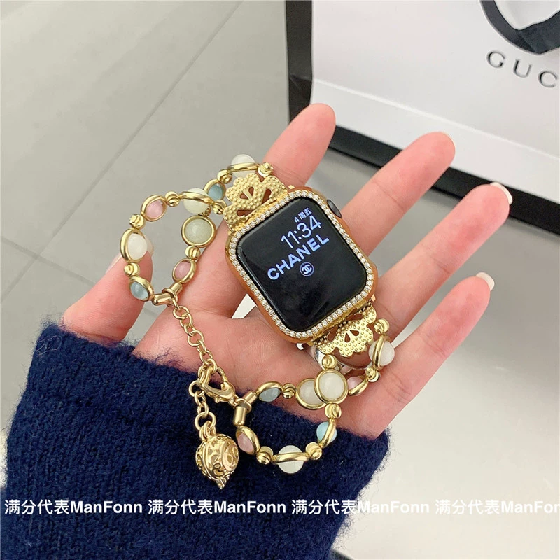 Suitable for iwatch6 Apple watch applewatch945 generation luminous agate beaded luxury chain 78se trendy
