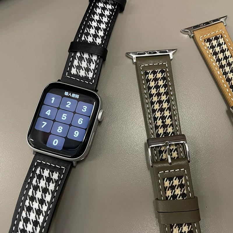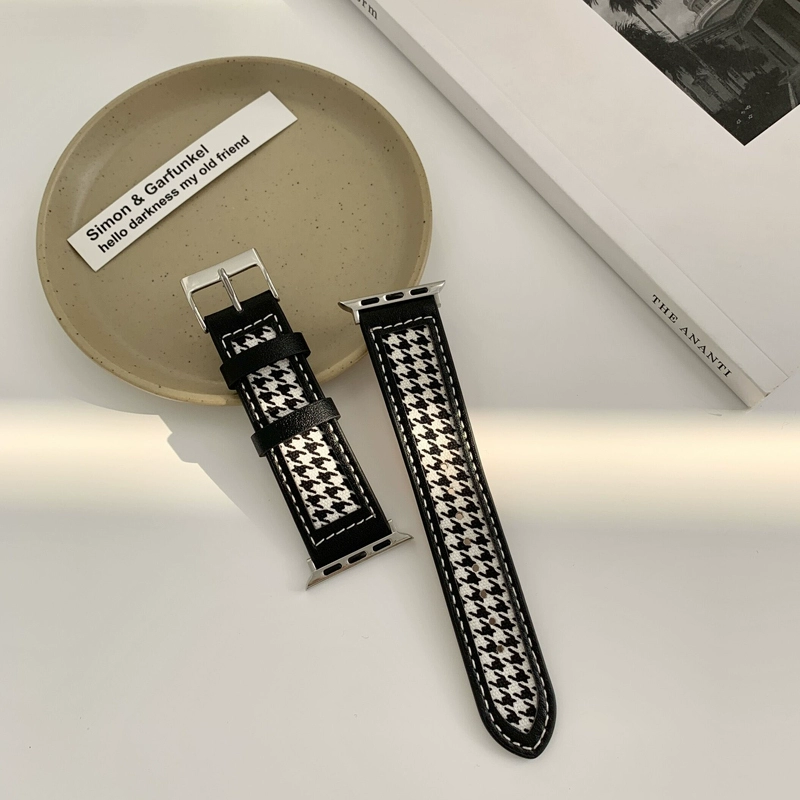 | nameOriginal | Suitable for iwatch7 strap apple watch 6th generation apple watch 54321/se genuine leather with houndstooth pattern personalized leather strap canvas black printing creative 40/44/41/45mm |