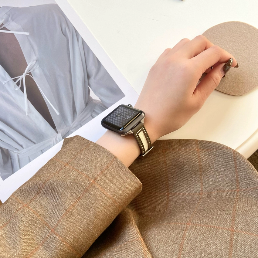 Suitable for iwatch7 strap applewatch6 strap Apple watch strap 3/4/5/se generation Korean simple niche canvas ins style leather niche 40/44/41/45 women’s high-end