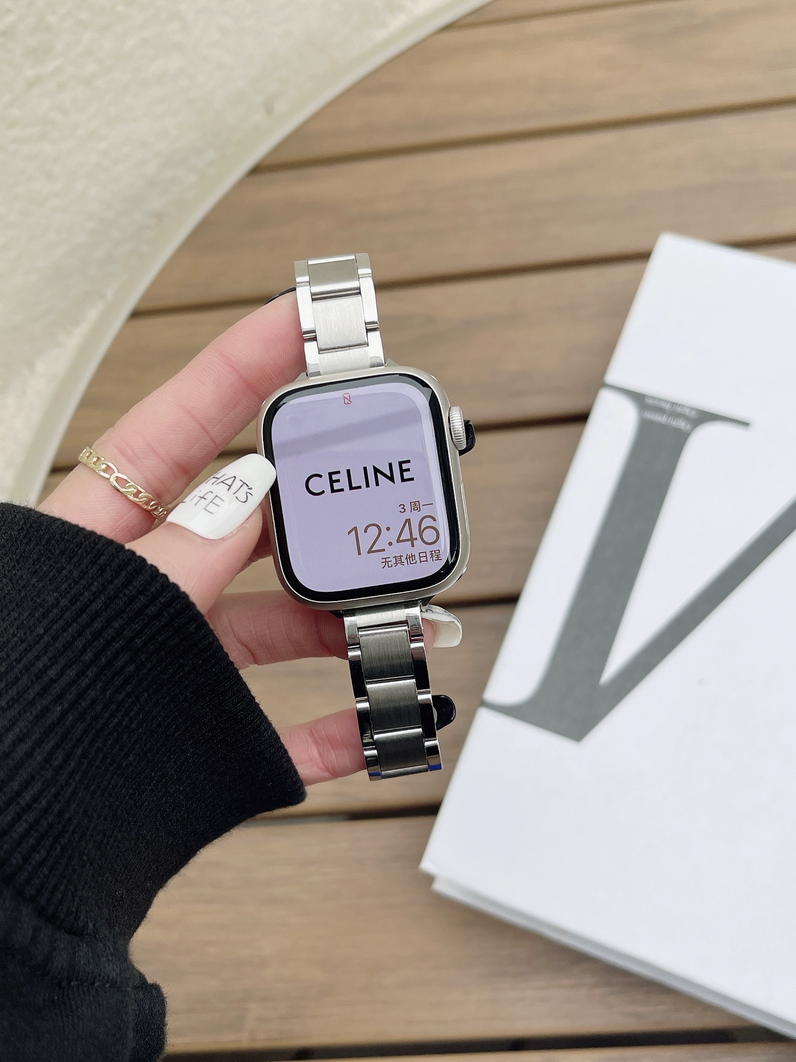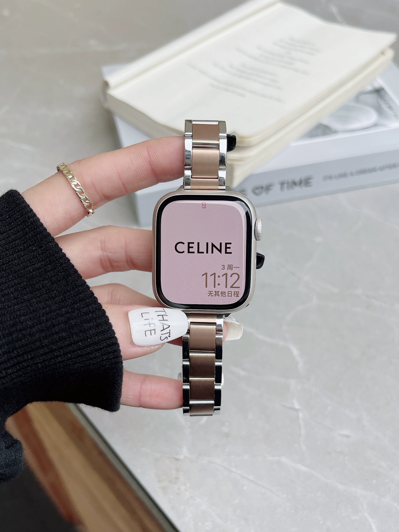 | nameOriginal | Suitable for iwatch8 Apple watch apple watch7 stainless steel metal watch strap s654 generation se new thin three chain steel strap niche high-end summer 41/45mm women's breathable |
