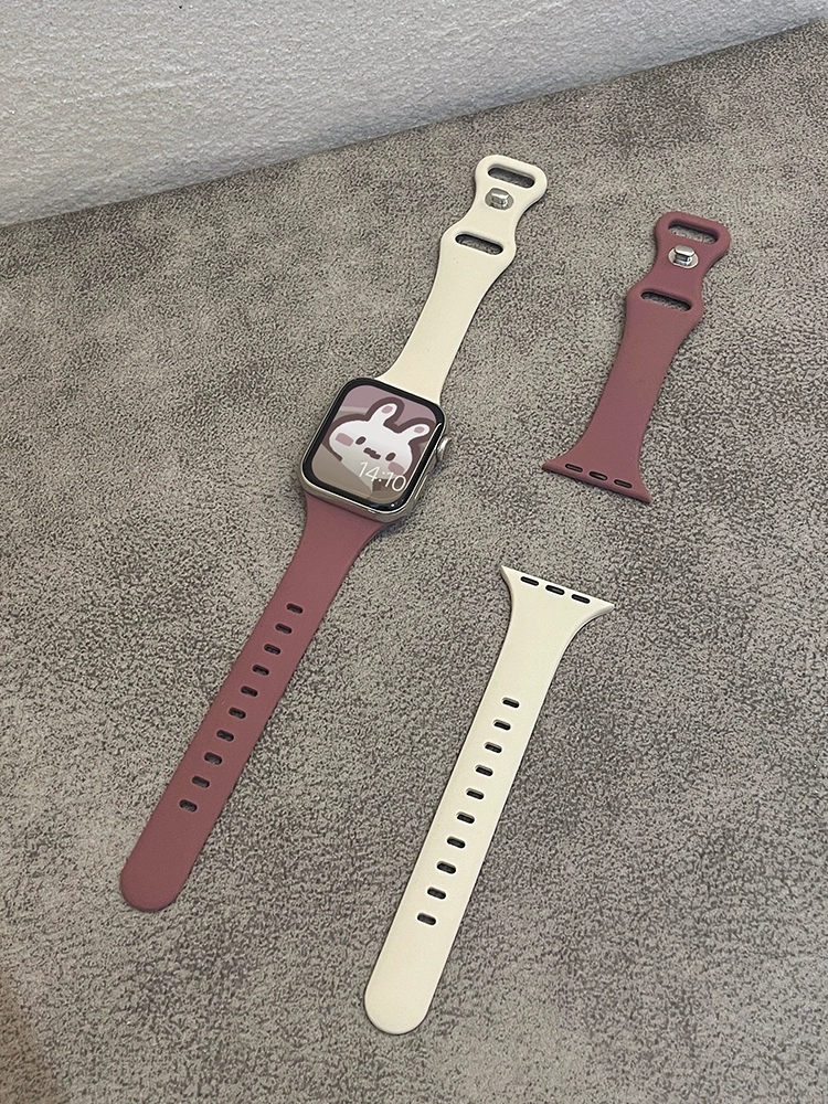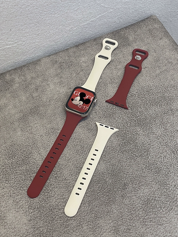 | nameOriginal | Suitable for iwatch8 watch strap Apple watch applewatch7 sports silicone two-color women's new fashion breathable and soft s6543/se2 generation 41/45mm summer butterfly buckle with contrasting color personality |