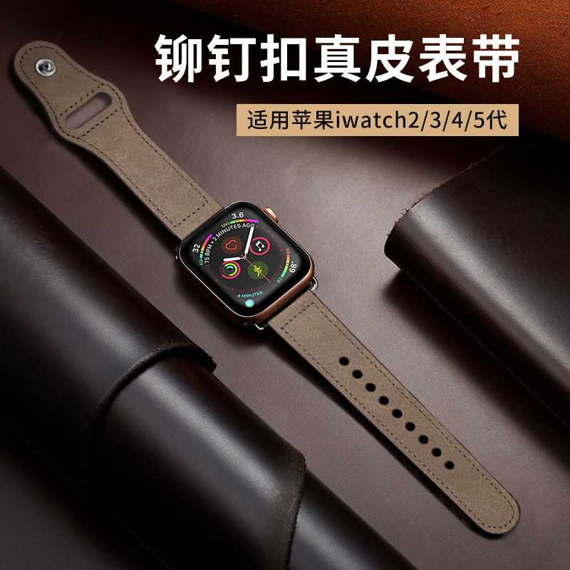 Suitable for iwatchse Smart Watch Band Retro Leather Business Small Man Waist Top Layer Genuine Leather 22mm Nail Buckle Strap