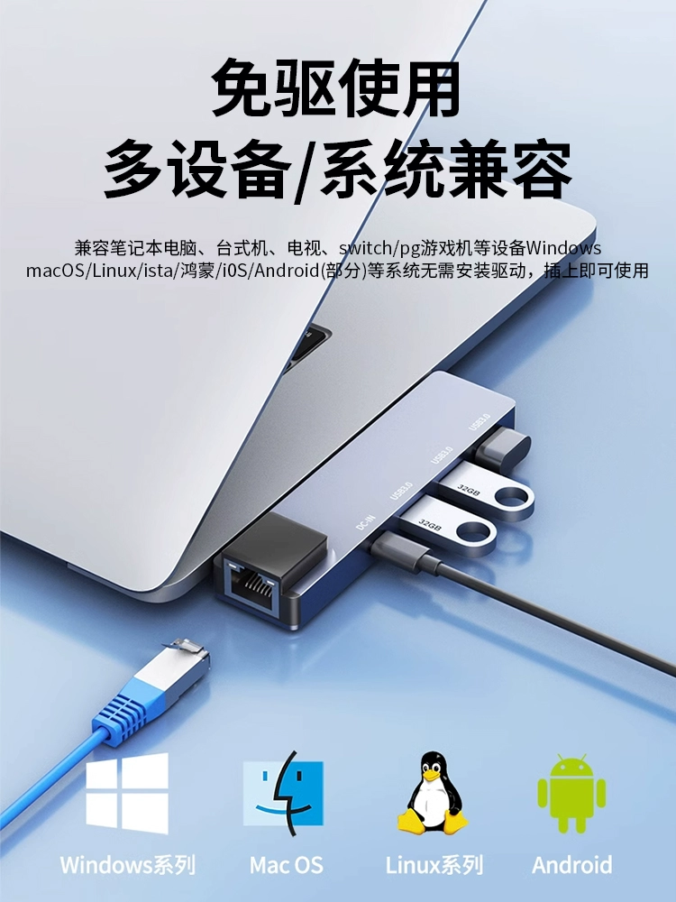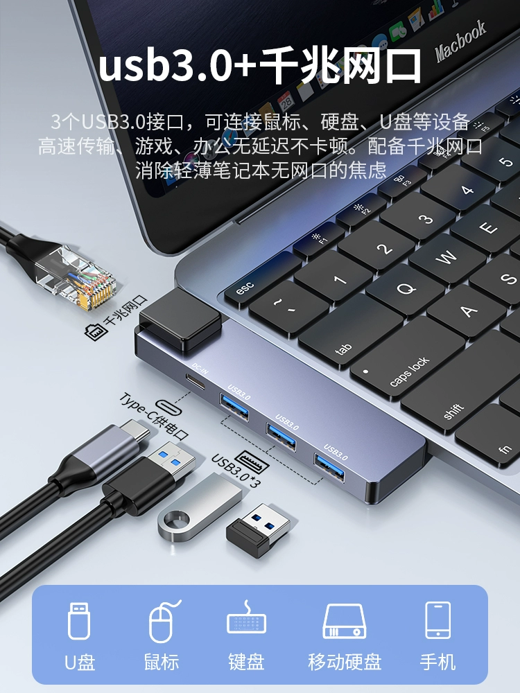 Applicable Lenovo Xiaoxin 15 network cable conversion laptop computer converter AIR14/Pro16 expansion dock ThinkPad side -to -side plug Typec semiper USB3.0 expansion multi -port