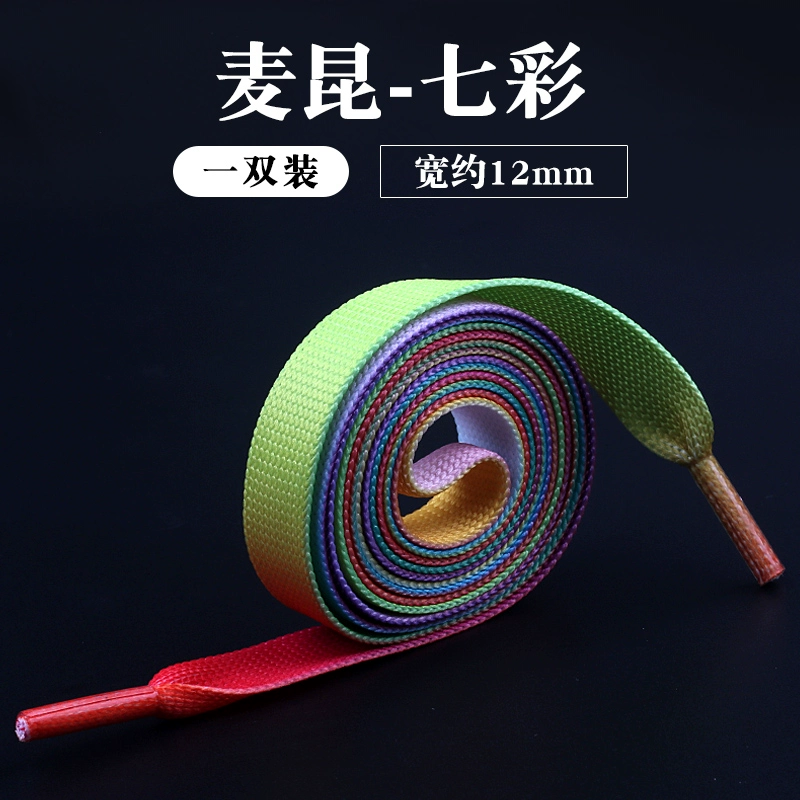| nameOriginal | Suitable for McQueen's original new version of white shoes white seven-color rainbow shoelaces flat wide men's and women's shoelaces gradient color |