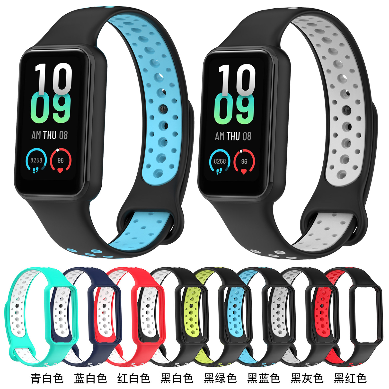 Suitable for mi bracelet Band8 Active two-color strap red mi bracelet 2 breathable silicone Sports wristband